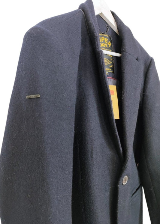 Μάλλινο Ανδρικό Παλτό SUPERDRY σε Σκούρο Μπλε Χρώμα (Medium)