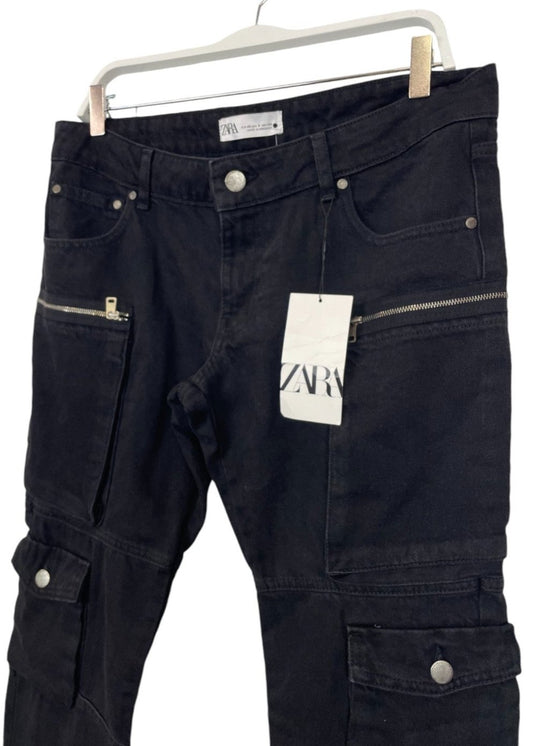 Stock, Γυναικείο Tζιν-Cargo Παντελόνι ZARA σε Μαύρο Χρώμα (No. 40)