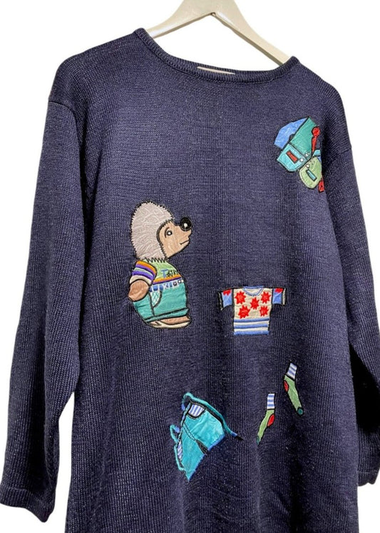 Vintage, Πλεκτή Ανδρική Μπλούζα/Πουλόβερ IL GRANCHIO σε Μπλε-Βυσσινί χρώματα (Large)