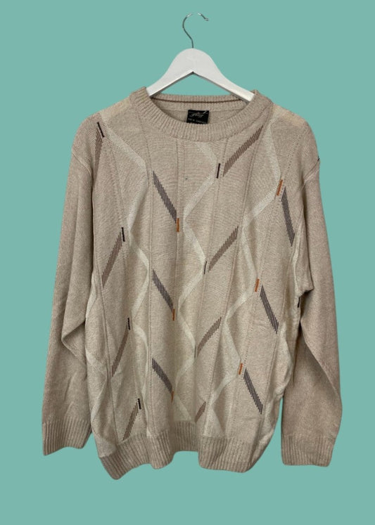 Vintage, Ανδρική Πλεκτή Μπλούζα/Πουλόβερ NEW TEKS σε Μπεζ χρώμα (Large)