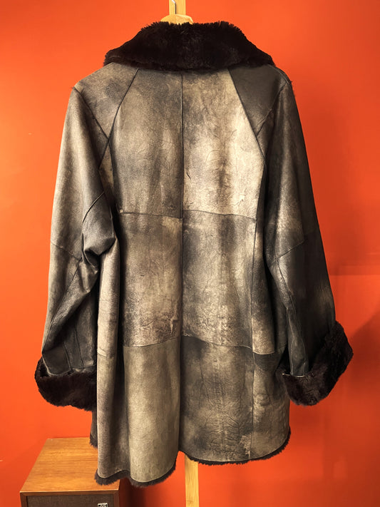 Double Face (Διπλής Όψης), Vintage Γούνα / Μουτόν SYLVIE SCHIMMEL Paris σε Σκούρο Καφέ/Γκρι χρώμα (Άνετο L/XL)