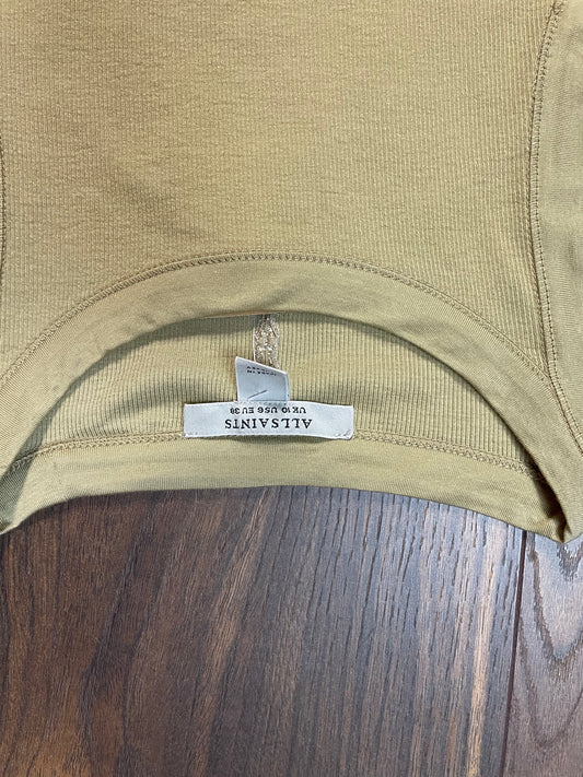 Vintage Γυναικεία Μπλούζα από Βελούδο και Κοφτό σχέδιο σε Χακί / Μπεζ χρώμα (Small)