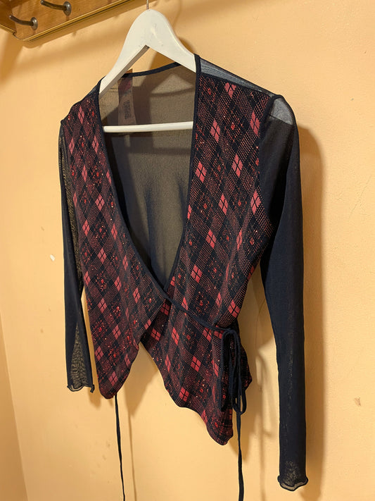 Vintage, Κρουαζέ Τοπ / Ζακετάκι σε Μαύρο - Σκούρο Κόκκινο χρώμα (Small)