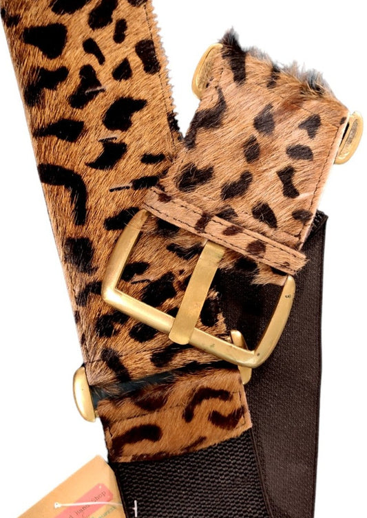 Ελαστική Γυναικεία Ζώνη με Δερμάτινα σημεία και Animal Print Τρίχωμα