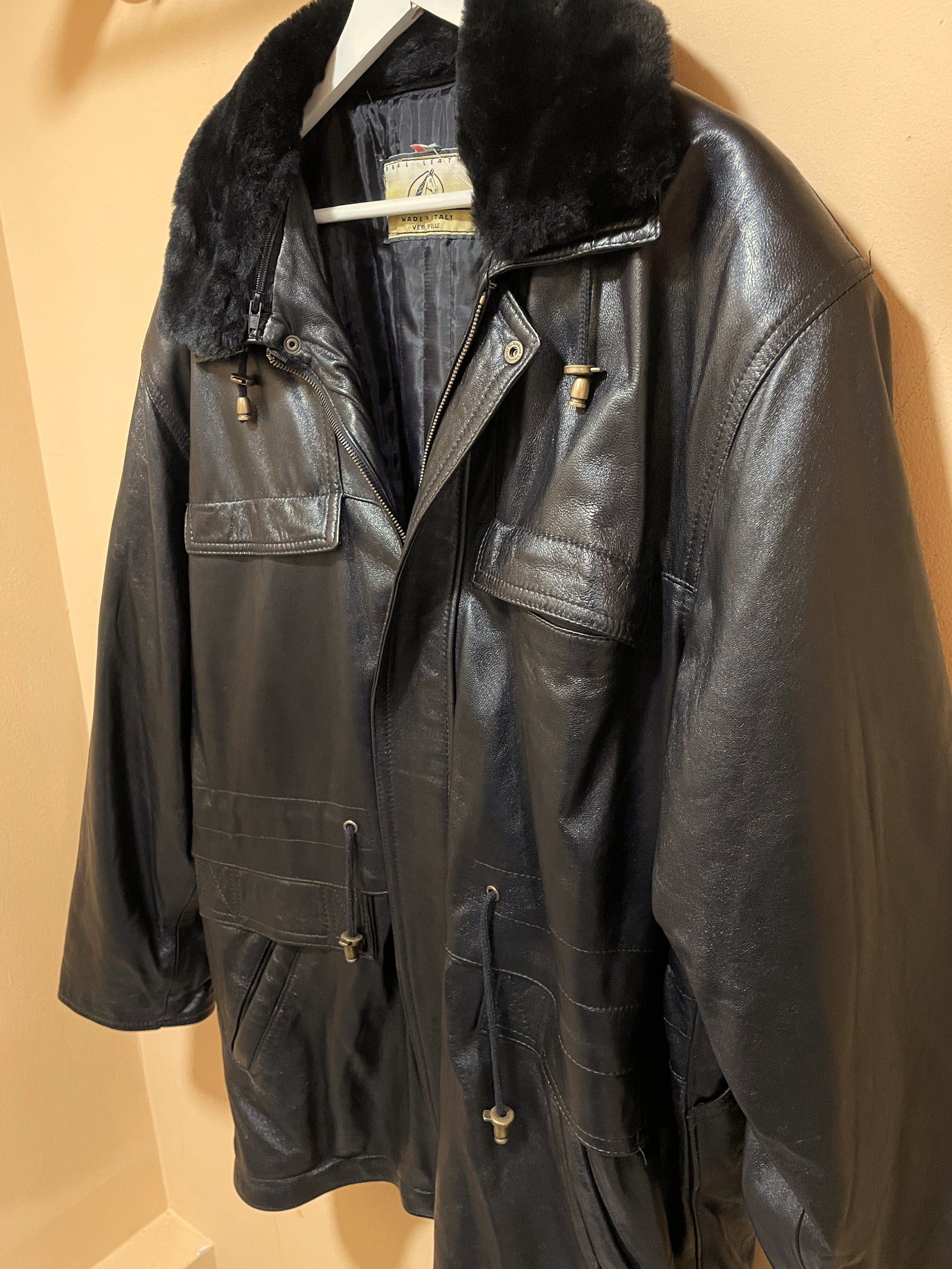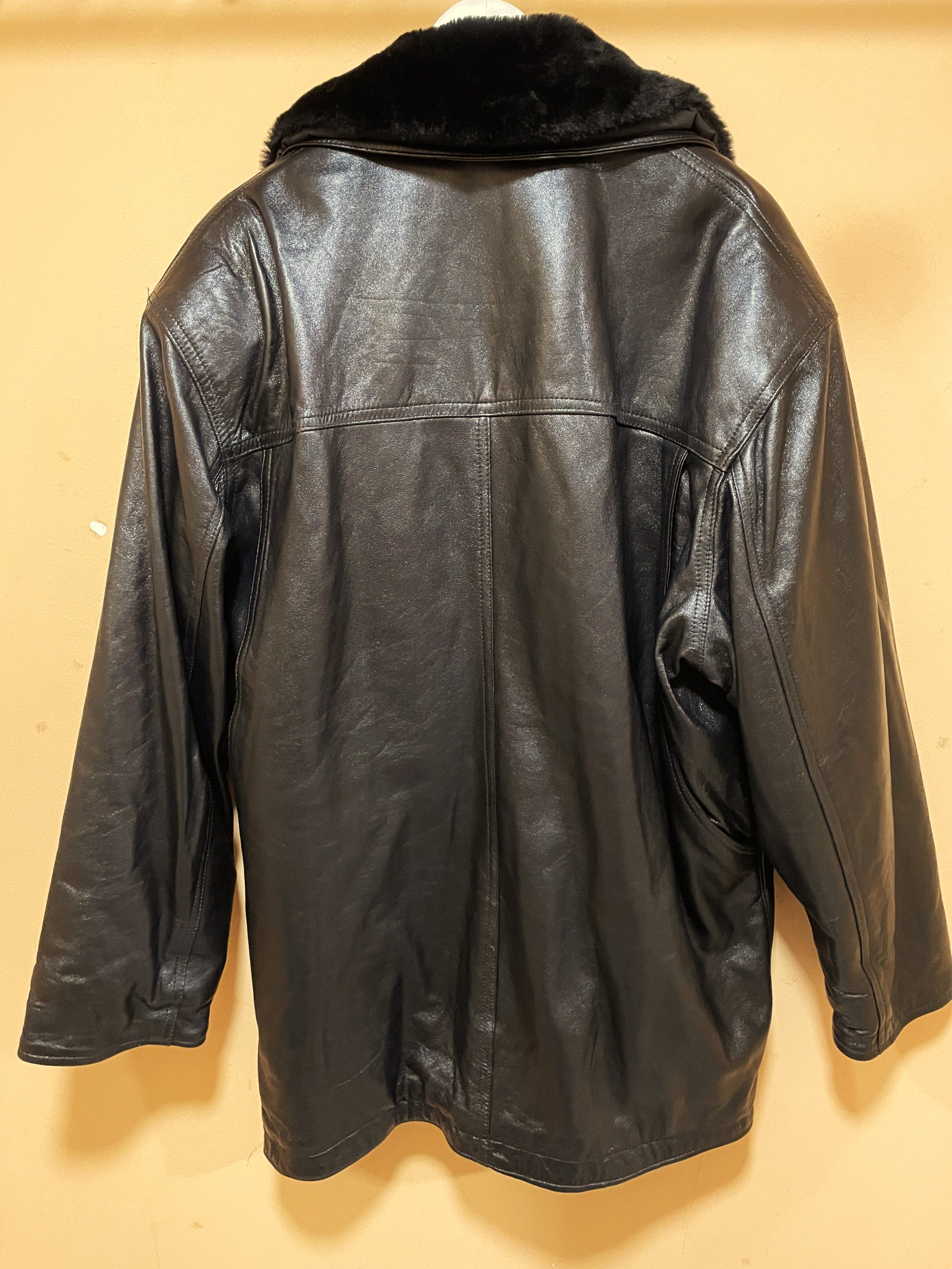 Vintage, Δερμάτινο Ανδρικό Τζάκετ EURO MODA By MF σε Μαύρο χρώμα (Άνετο XL)