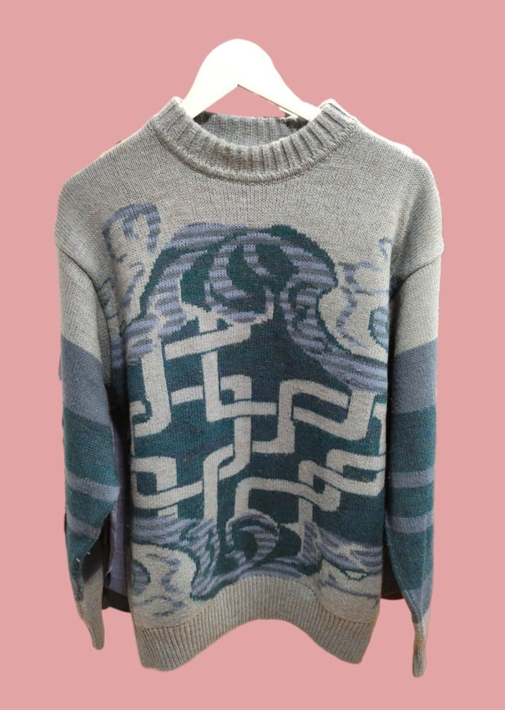 Πλεκτή Γυναικεία Μπλούζα ΜΑΚ σε Παλ Γαλάζιο - Γκρι χρώμα (Μedium)