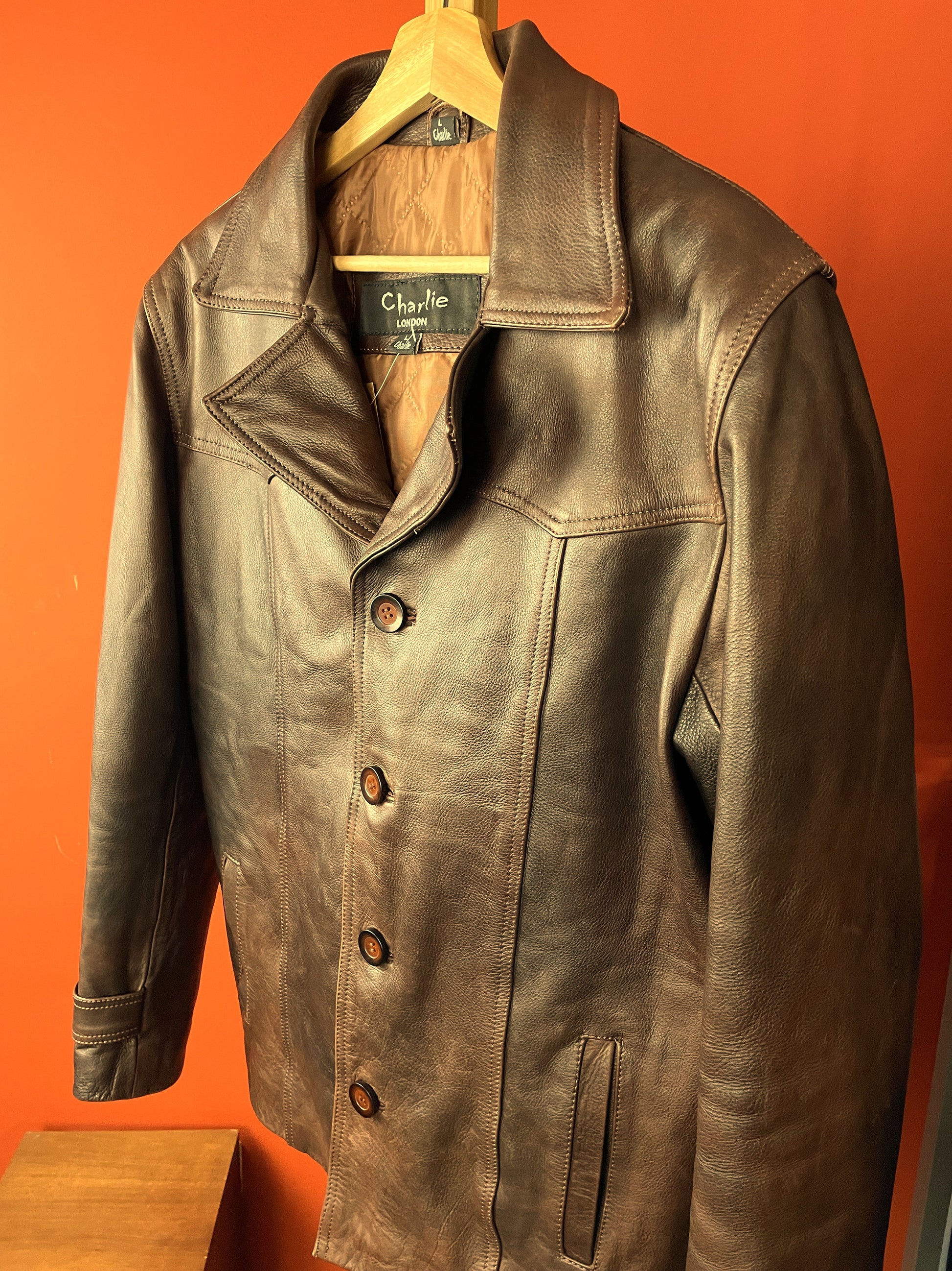 Δερμάτινο Ανδρικό Τζάκετ CHARLIE LONDON σε Σκούρο Καφέ χρώμα.