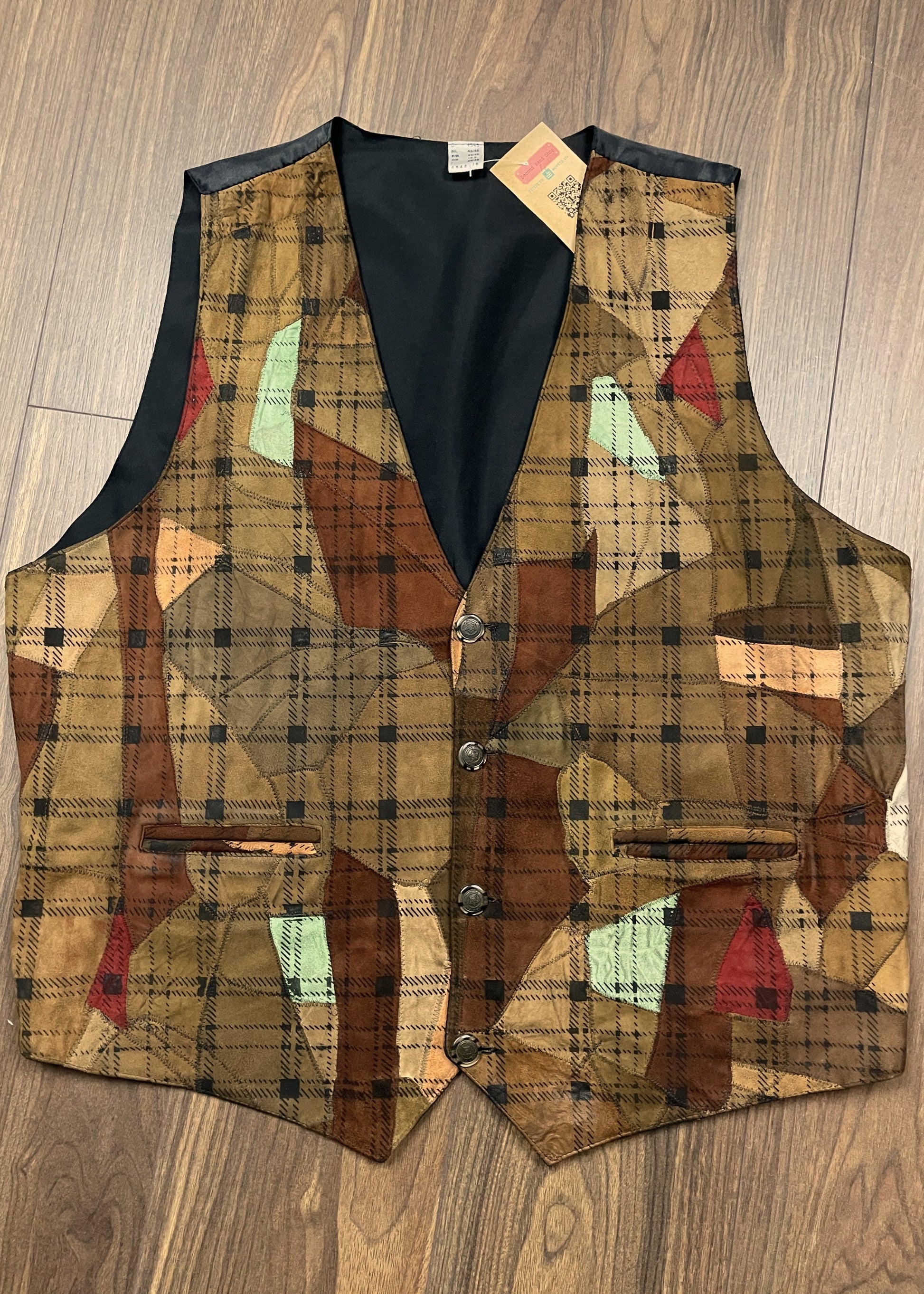 Vintage, Δερμάτινο Aνδρικό Γιλέκο σε Καφέ Χρώματα.