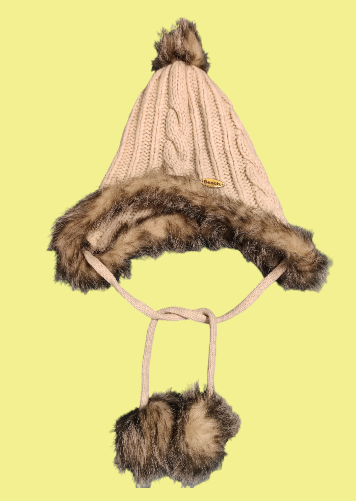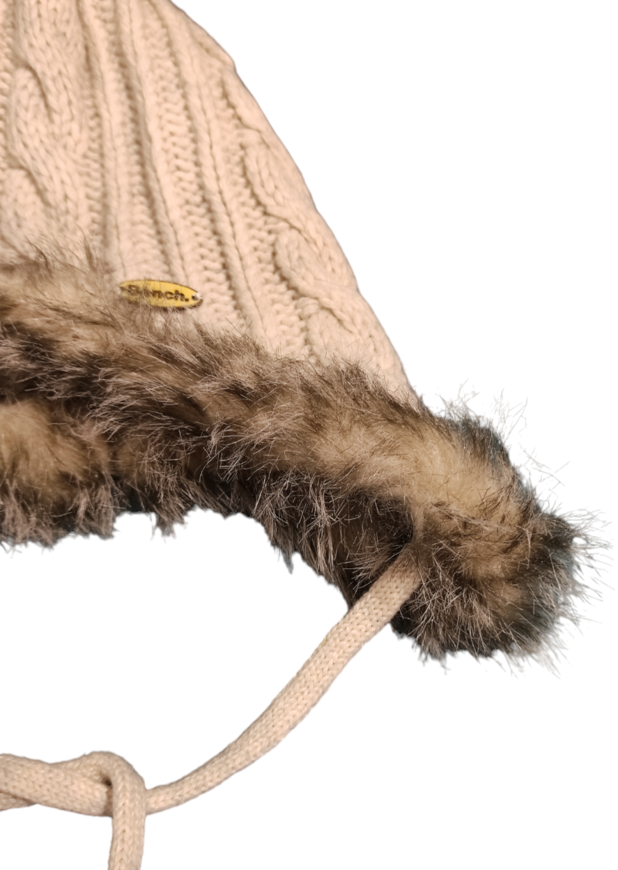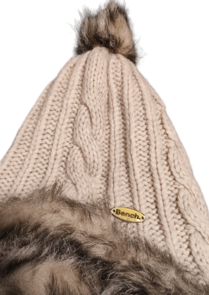 Γυναικείος Πλεκτός-Γούνινος Σκούφος BENCH σε Μπεζ χρώμα.