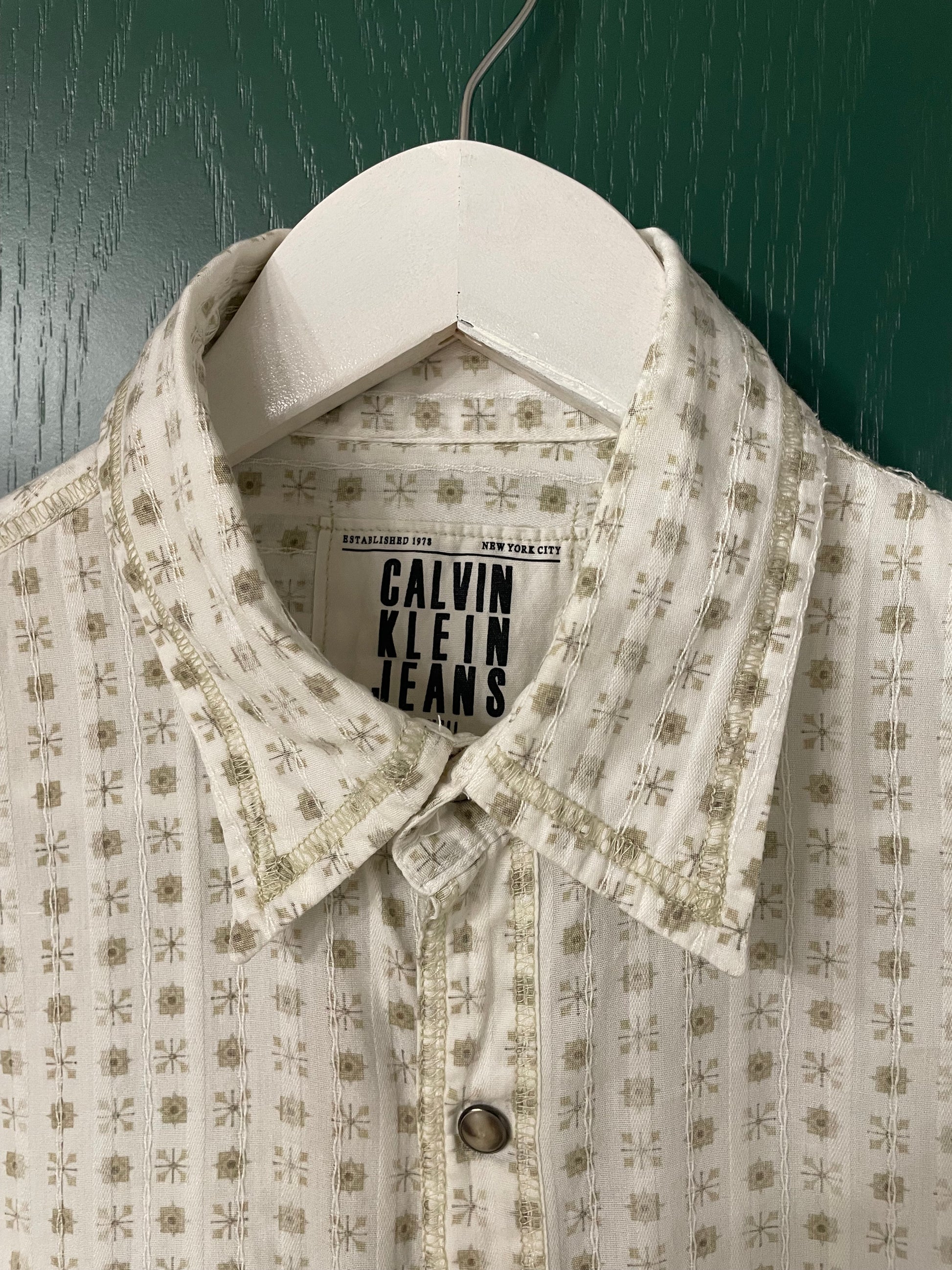 Εμπριμέ Ανδρικό Πουκάμισο CALVIN KLEIN σε Μπεζ χρώμα (Small)