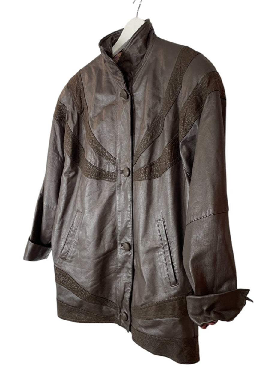 Vintage, Γυναικείο Δερμάτινο Τζάκετ ROBERT DANIEL σε Σκούρο Καφέ χρώμα (Medium-38)