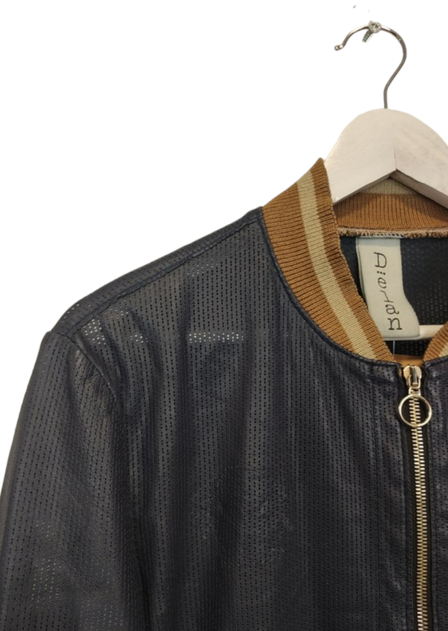 Γυναικείο, Δερμάτινο, Ελαφρύ Μπουφάν DELAN σε Σκούρο Μπλε χρώμα (Small)