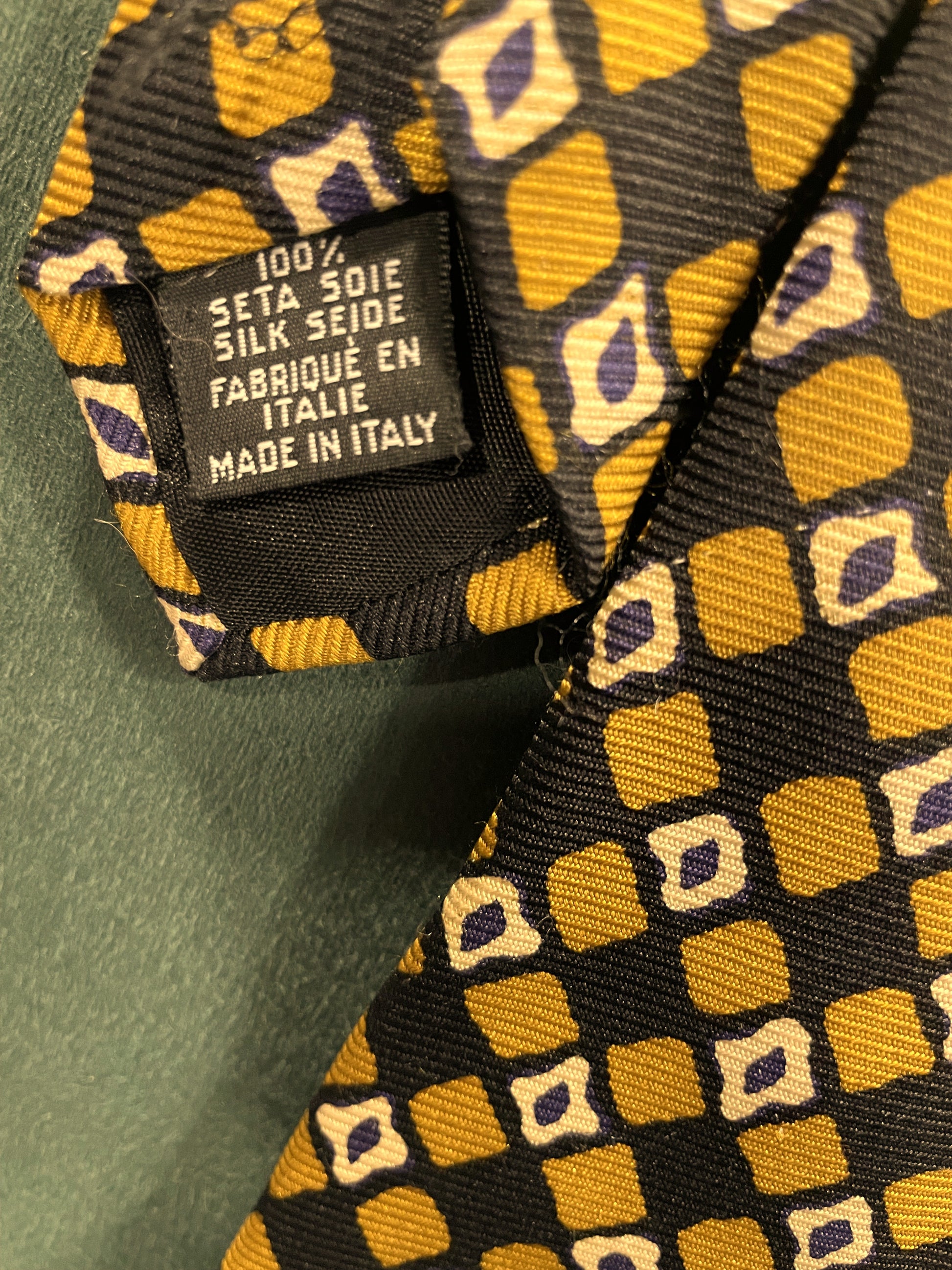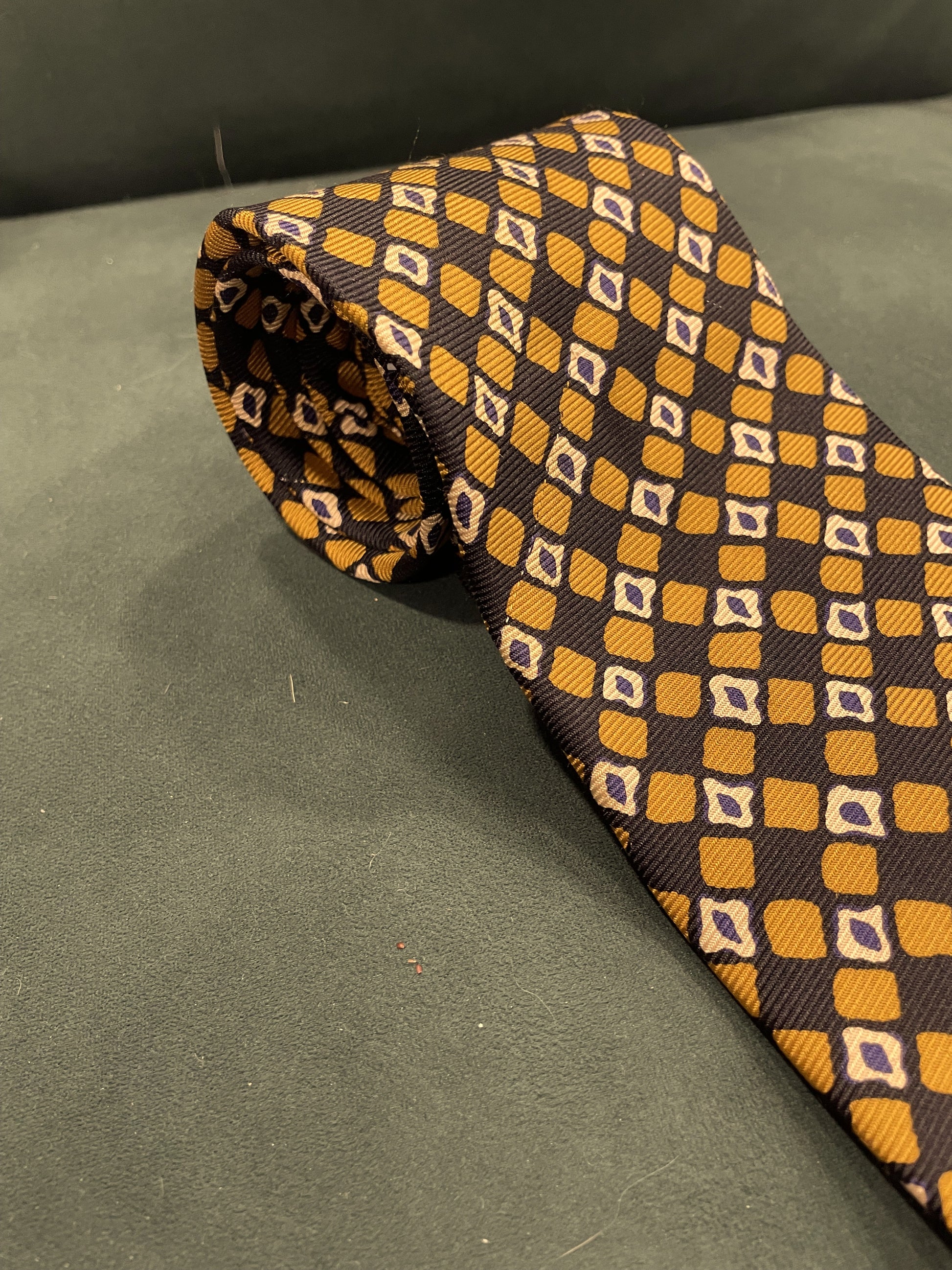 Μεταξωτή, Εμπριμέ Γραβάτα HUGO BOSS σε Μουσταρδί - Μαύρο χρώμα.