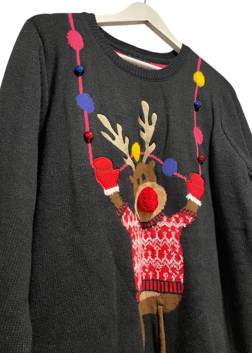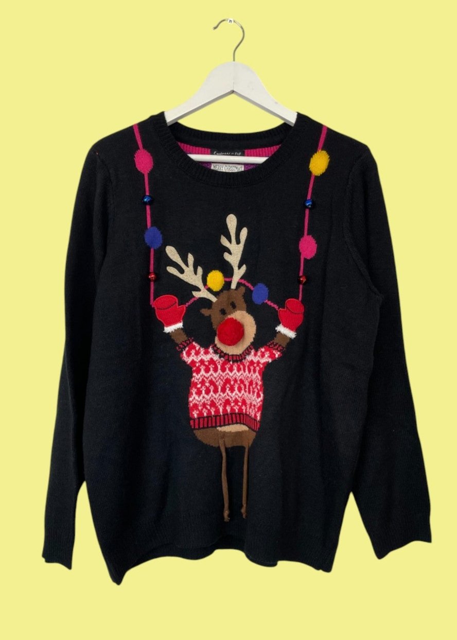 Χριστουγεννιάτικη, Γυναικεία Πλεκτή Μπλούζα/Πουλόβερ F & F σε Μαύρο Χρώμα (Large)
