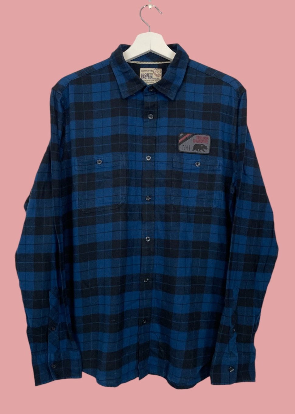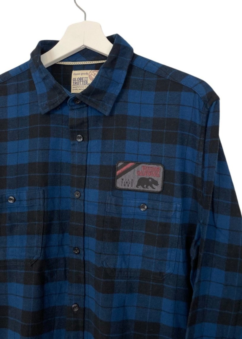 Μακρυμάνικο, Ενισχυμένο Ανδρικό Πουκάμισο/Flannel GLOBE TROTTER σε Μπλε/Μαύρο χρώμα (Medium)