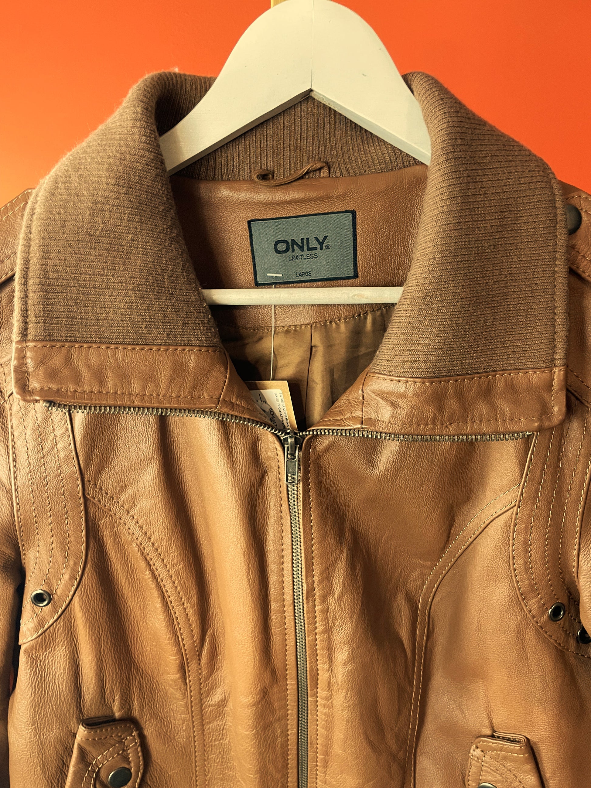 Vintage, Δερμάτινο Γυναικείο Τζάκετ / Πανωφόρι ONLY Limitless σε Καφέ χρώμα.