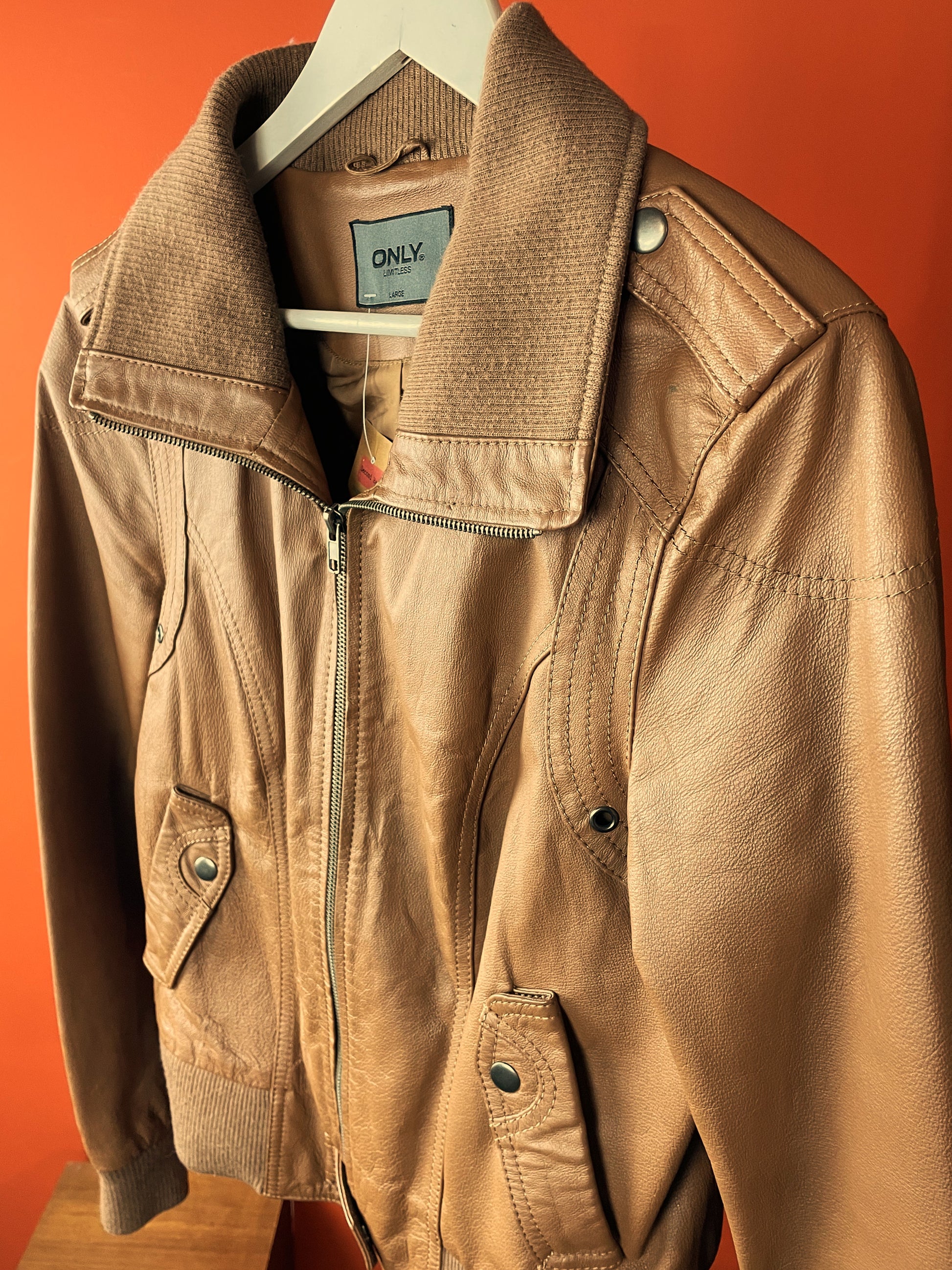 Vintage, Δερμάτινο Γυναικείο Τζάκετ / Πανωφόρι ONLY Limitless σε Καφέ χρώμα (Medium)