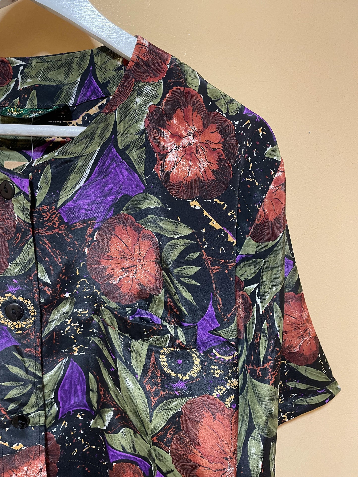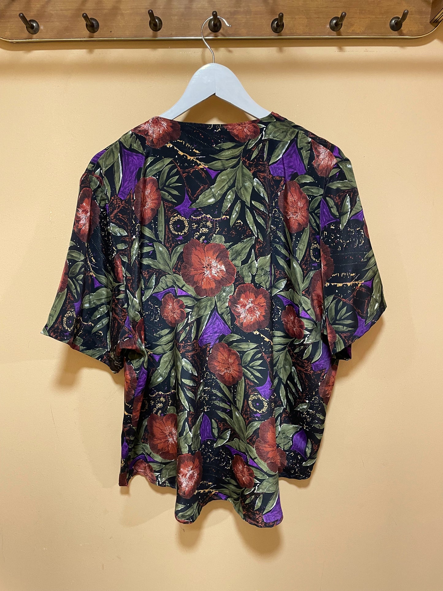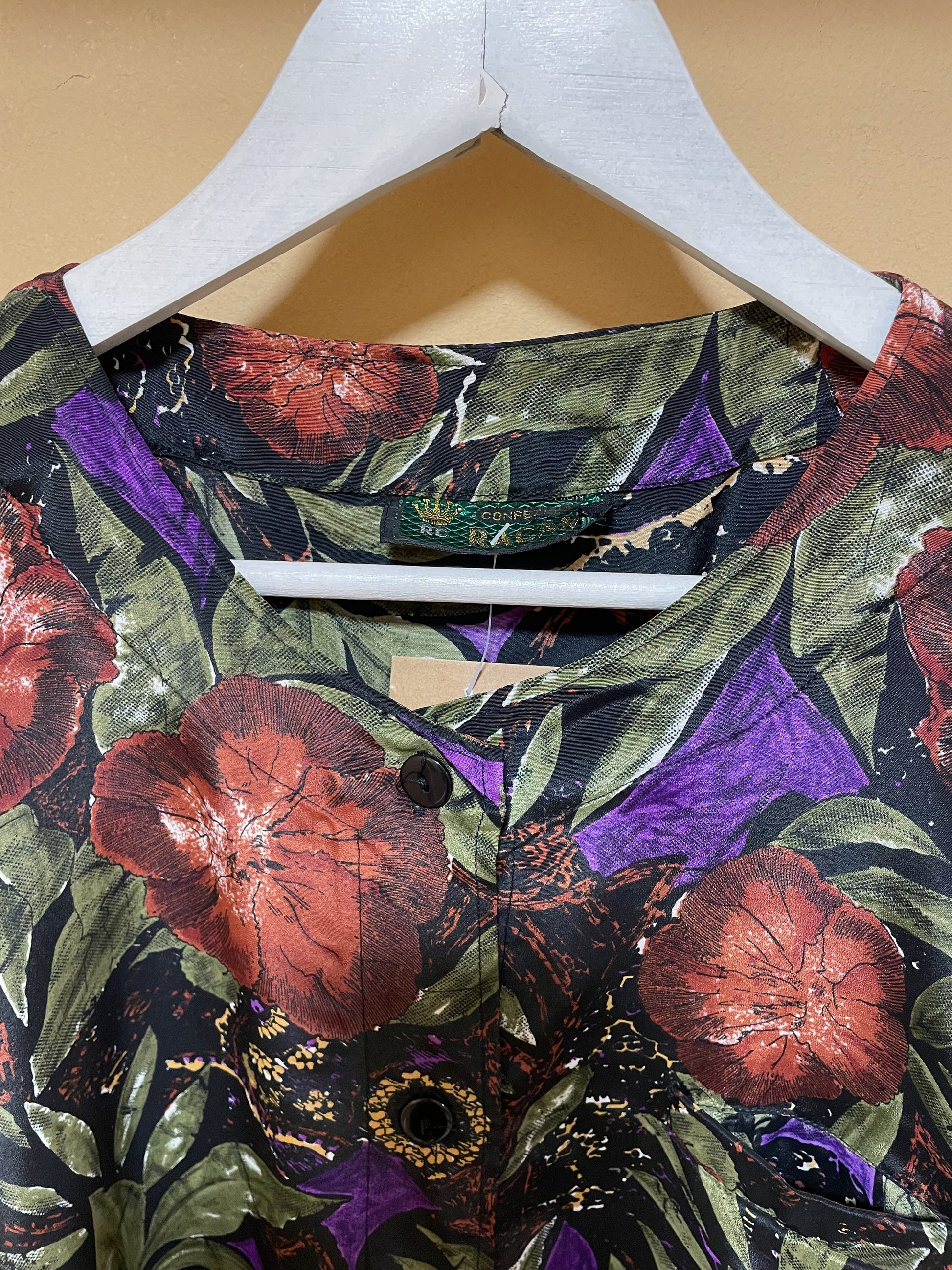 Vintage, Ιταλικό, Γυναικείο Πουκάμισο RACAM σε Μαύρο χρώμα με Εμπριμε Ντεσέν (2XL)