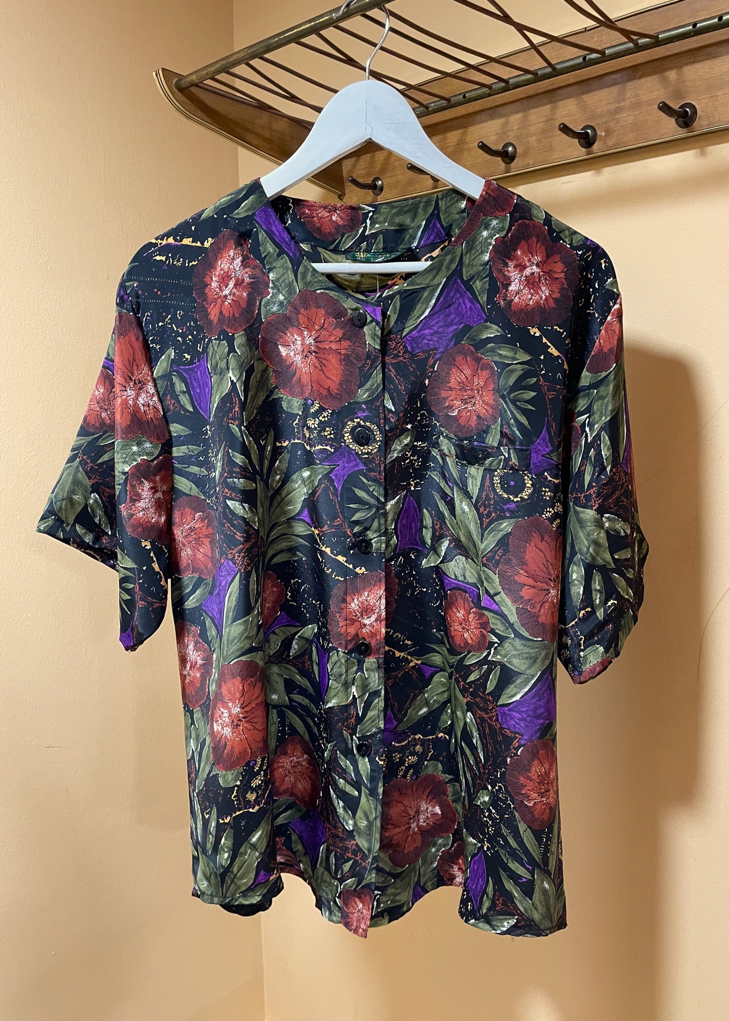 Vintage, Ιταλικό, Γυναικείο Πουκάμισο RACAM σε Μαύρο χρώμα με Εμπριμε Ντεσέν.