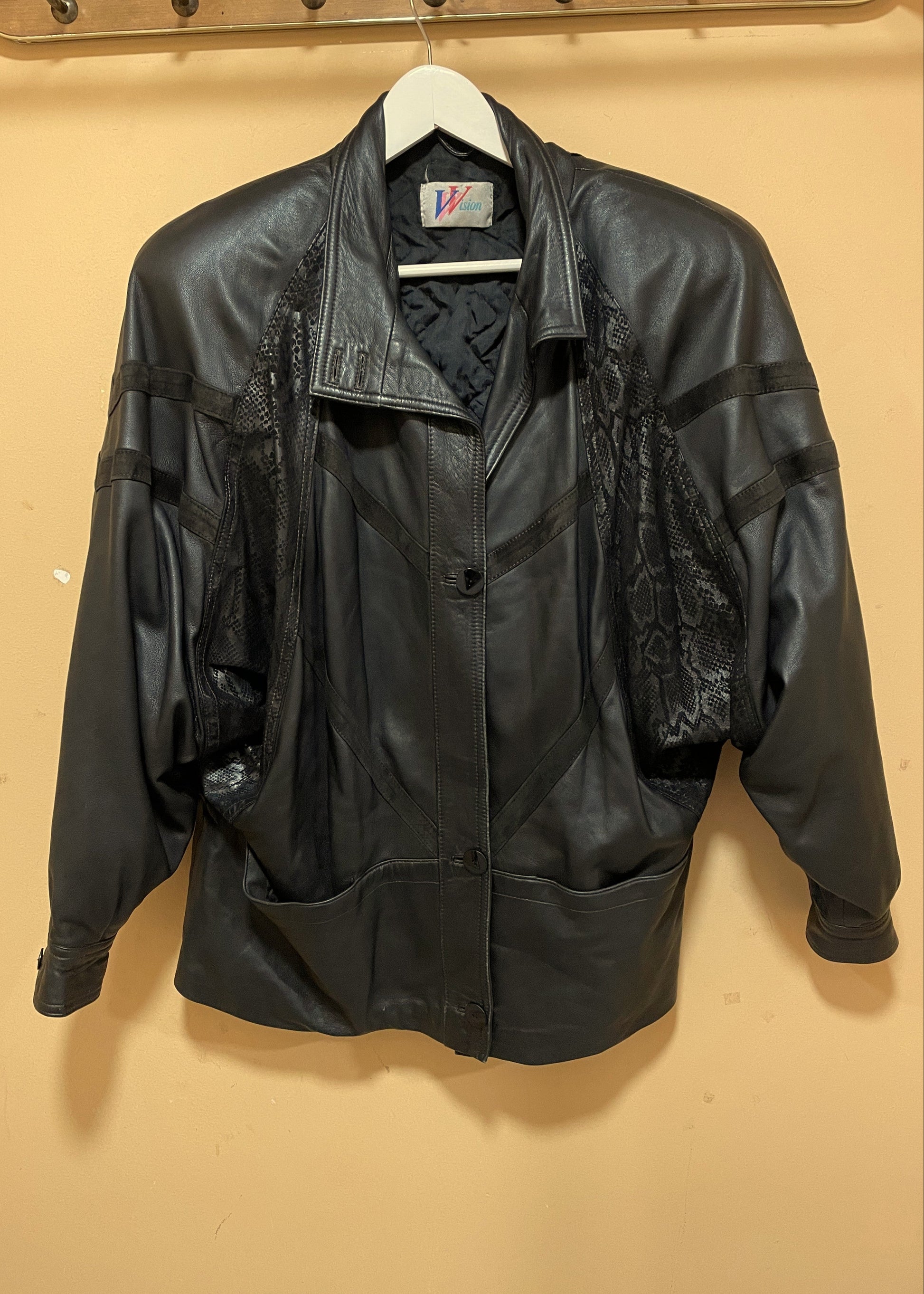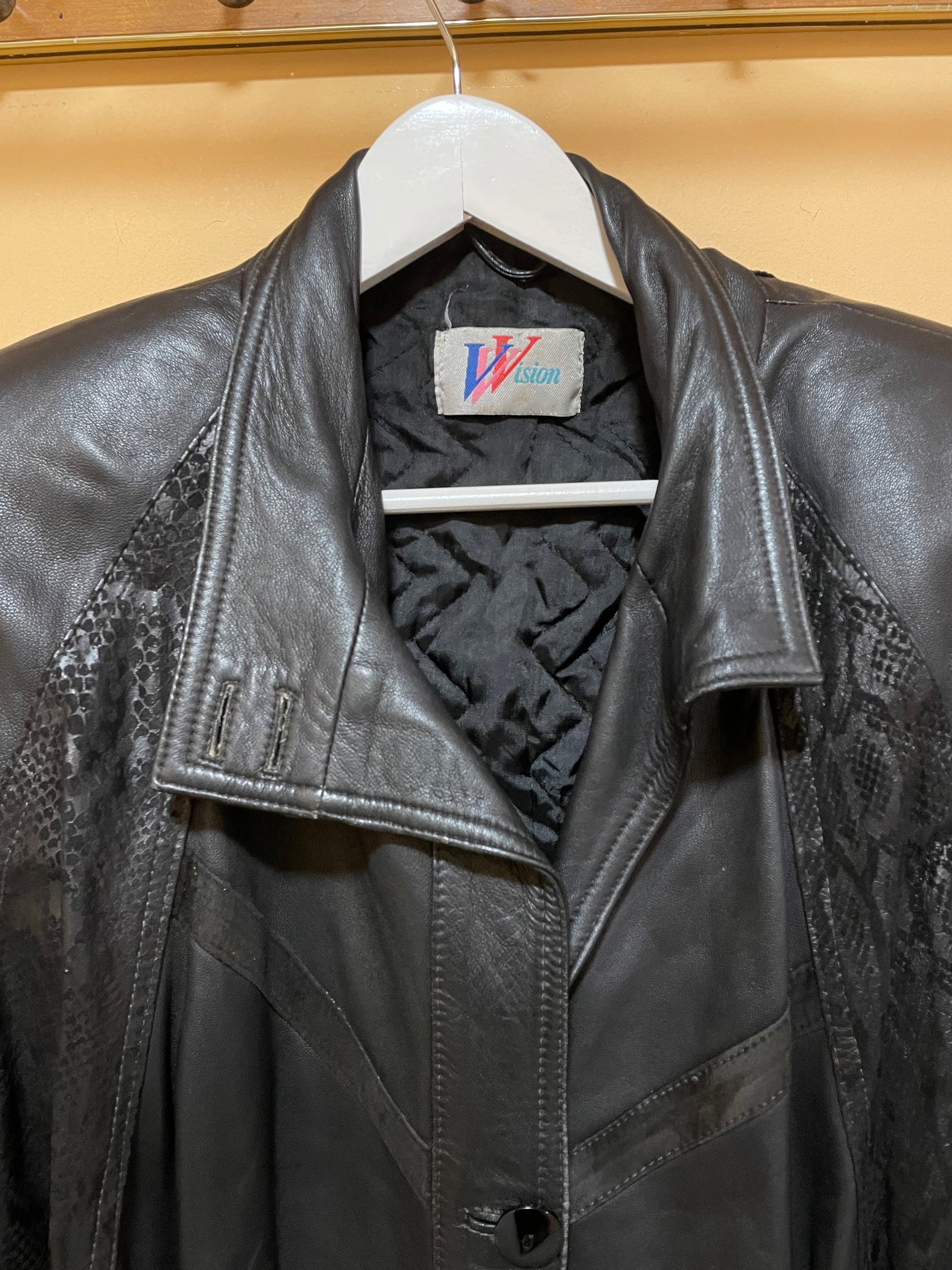 Vintage, Δερμάτινο Γυναικείο Τζάκετ / Πανωφόρι VISION σε Μαύρο χρώμα.