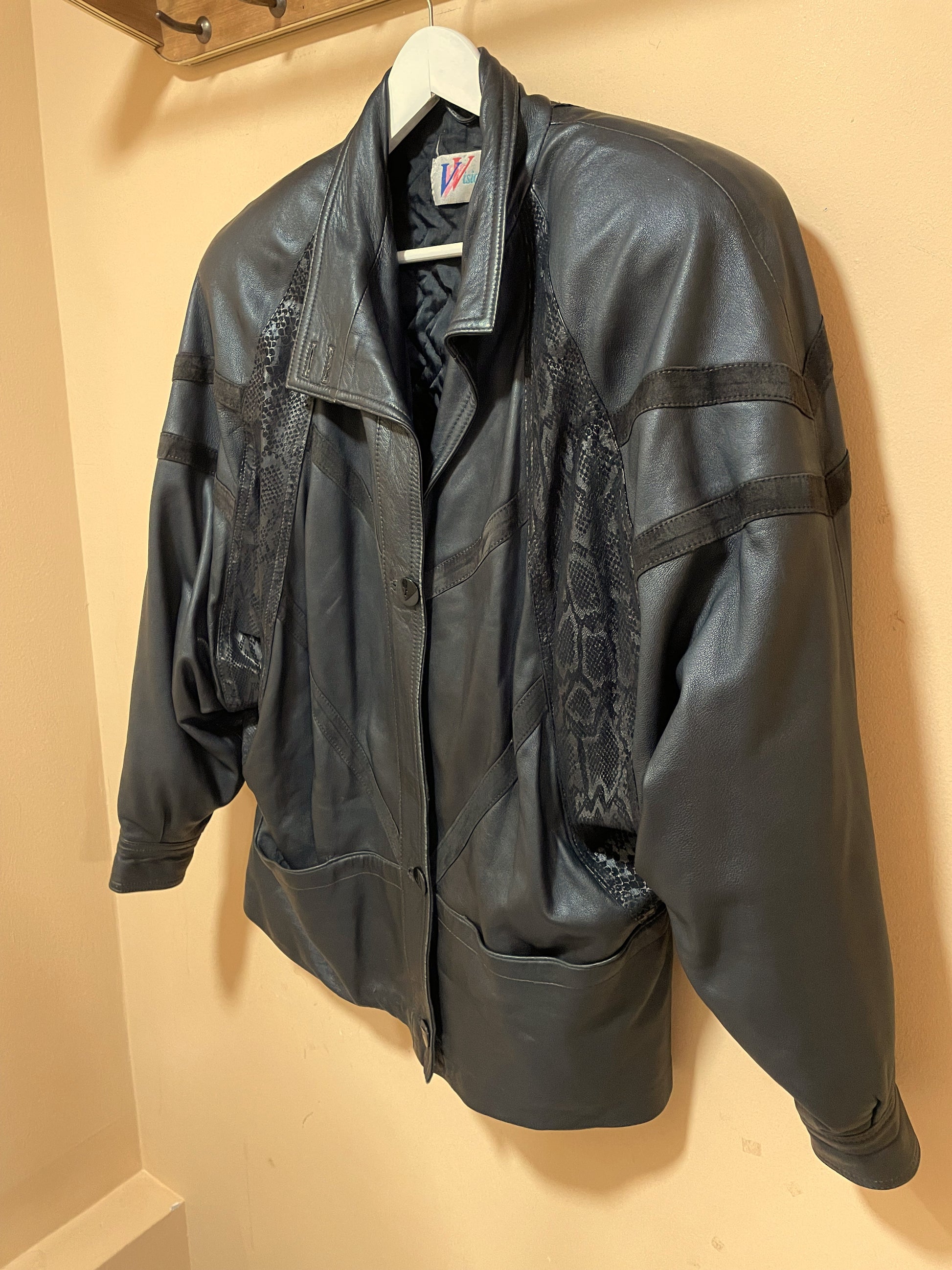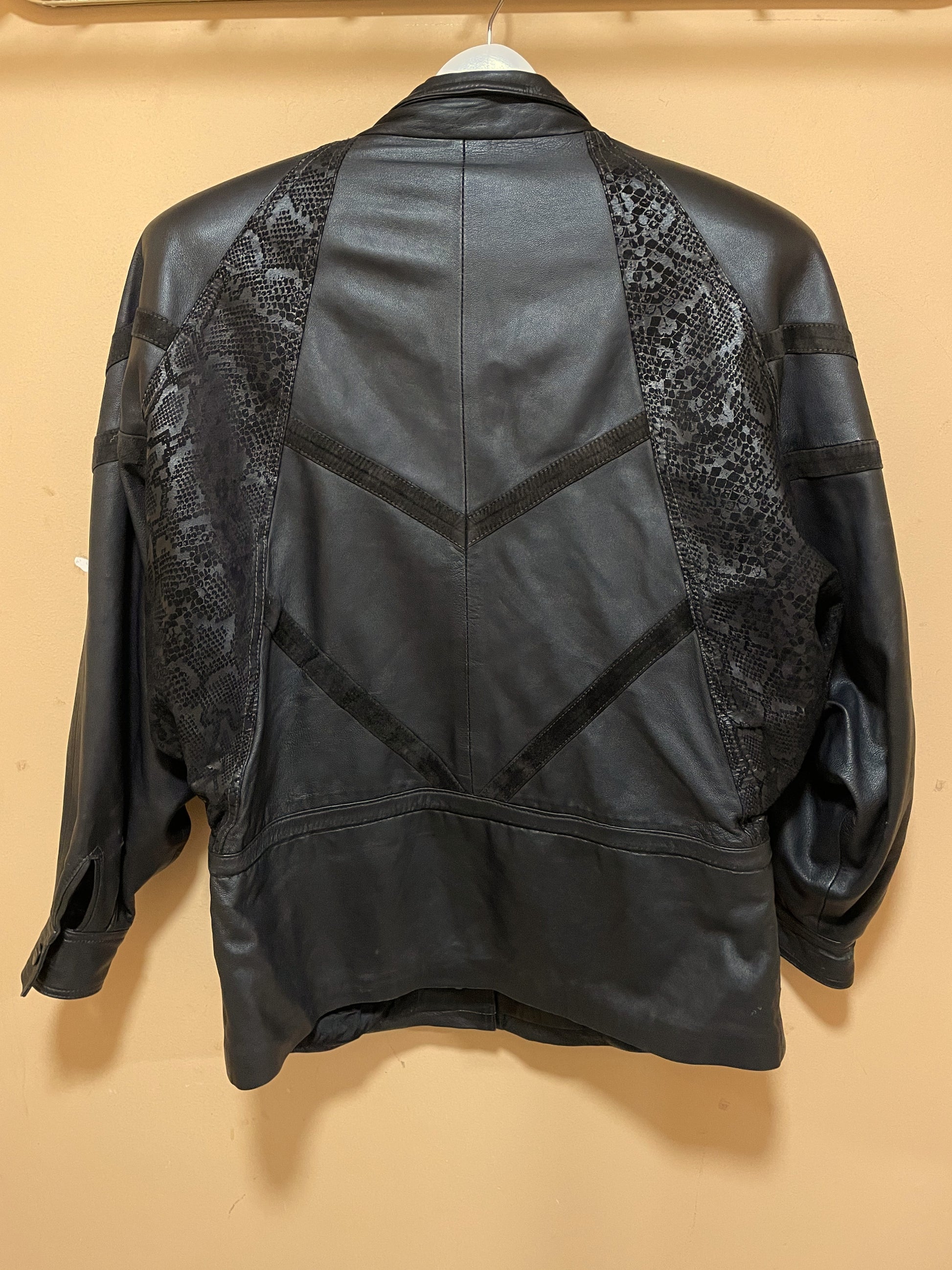 Vintage, Δερμάτινο Γυναικείο Τζάκετ / Πανωφόρι VISION σε Μαύρο χρώμα (Άνετο XL)