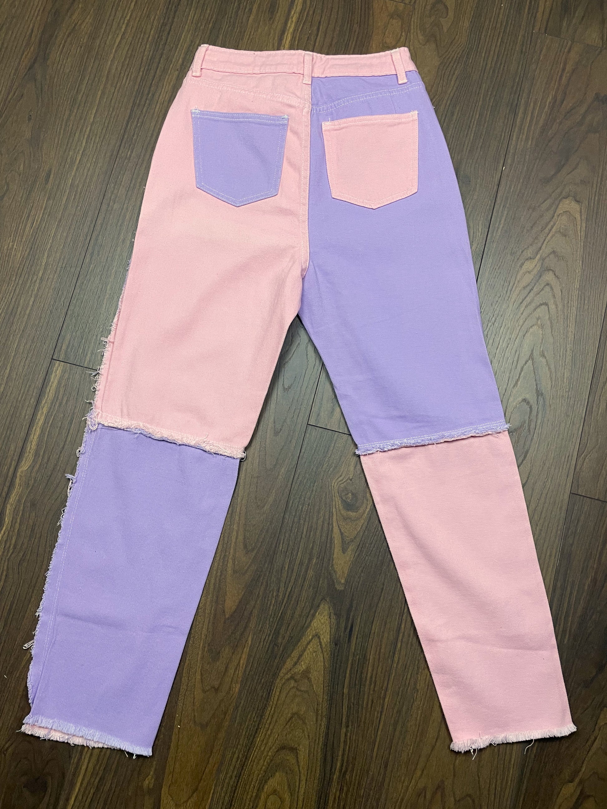 Γυναικείο Τζιν Παντελόνι SHEIN με ξώγαζα σε Ροζ - Λιλά χρώμα.