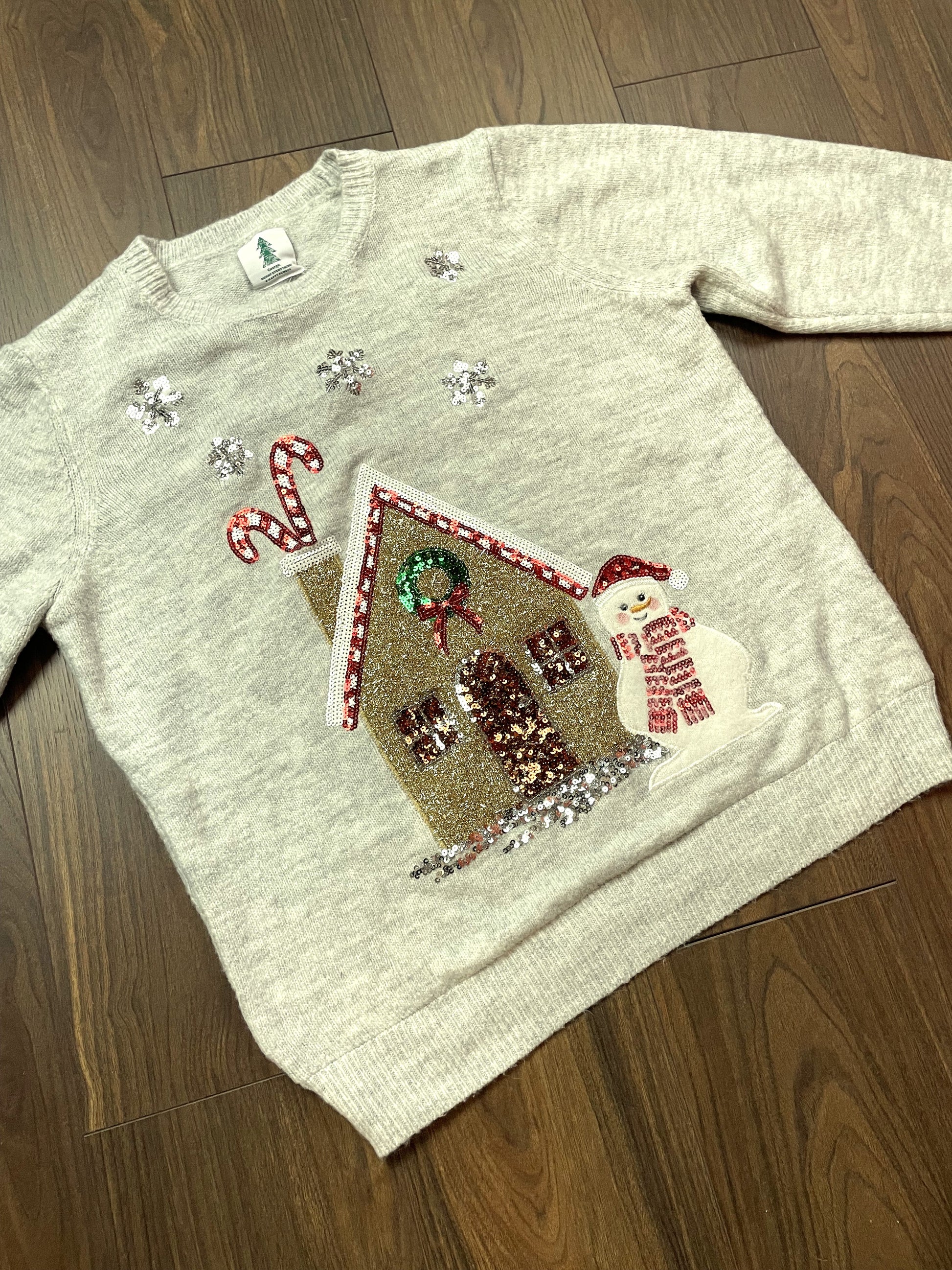 Χριστουγεννιάτικη, Γυναικεία Πλεκτή Μπλούζα/Πουλόβερ GEORGE. σε ανοιχτό Γκρι Χρώμα (Large)