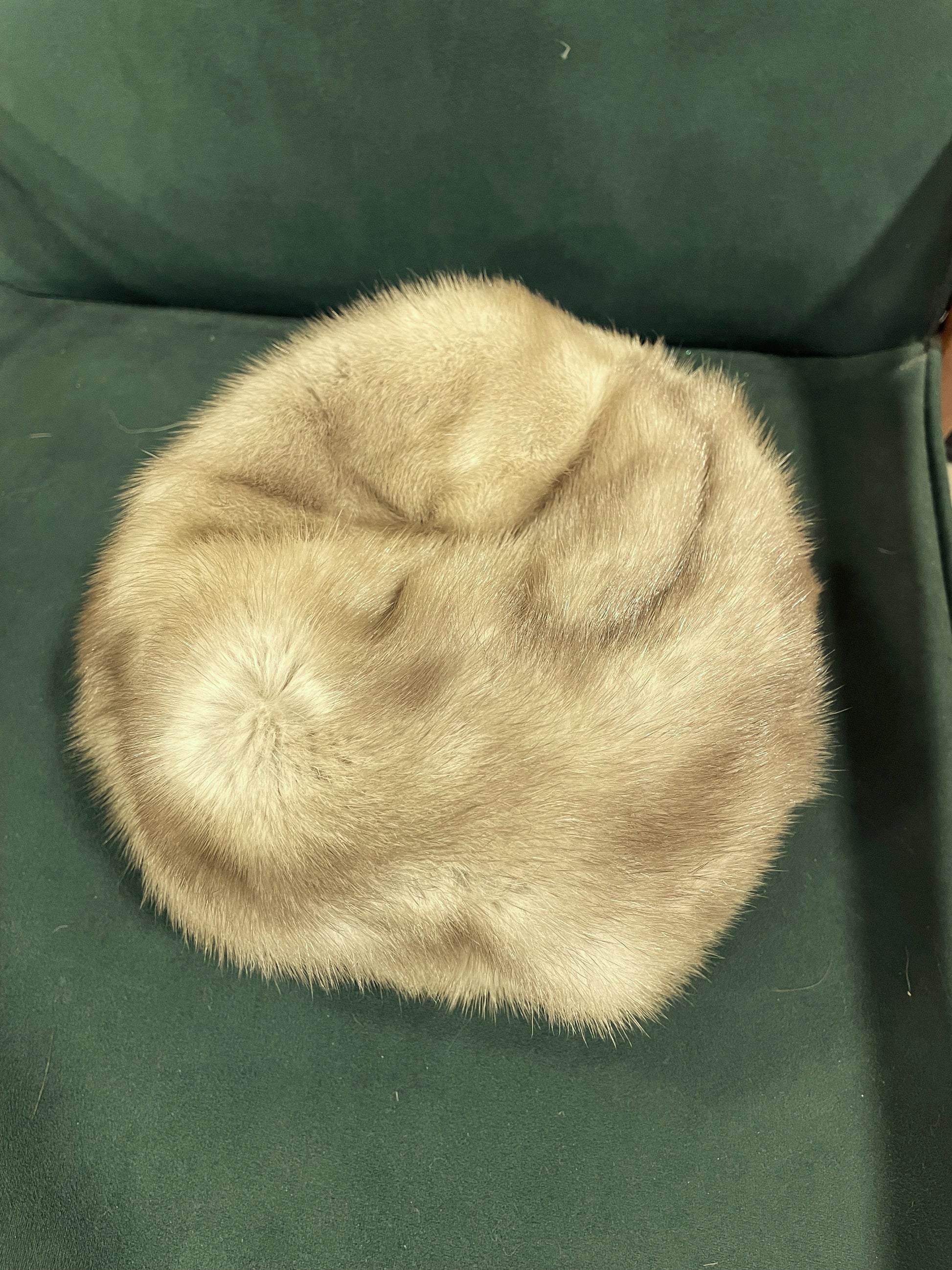 Χειροποίητο, Vintage Καπέλο από Φυσική Γούνα σε Γκρεζ Χρώμα.