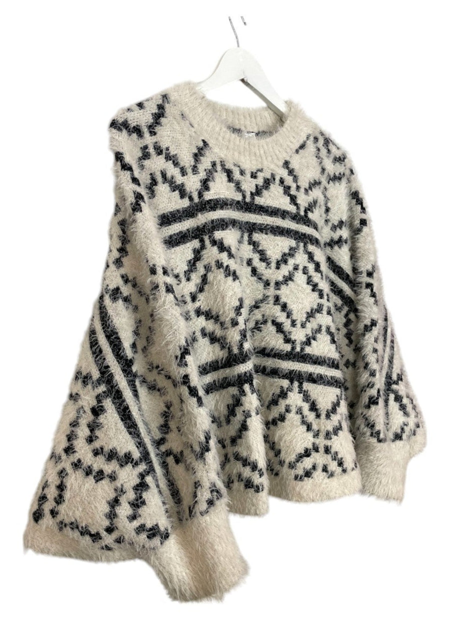 Γυναικείο Πλεκτό Πόντσο HERE THERE σε Ζαχαρί χρώμα.