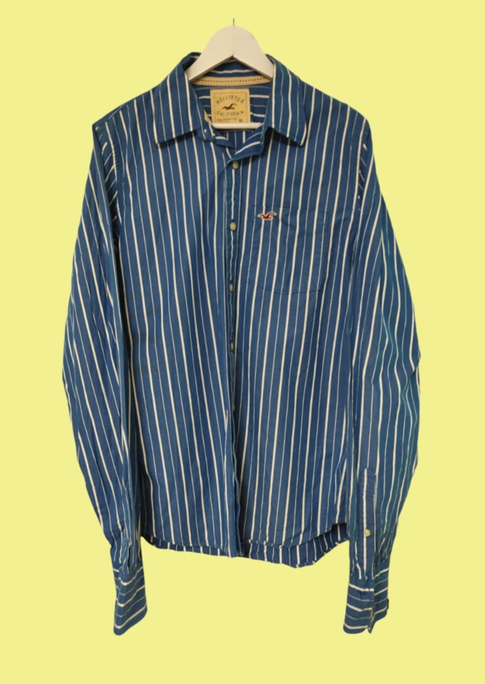 Ριγέ Ανδρικό Πουκάμισο HOLLISTER σε Σιέλ - Λευκό Χρώμα (Large)