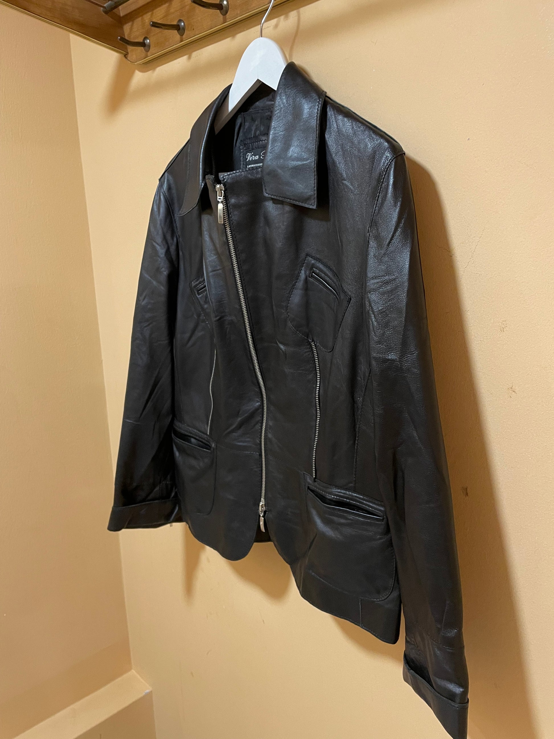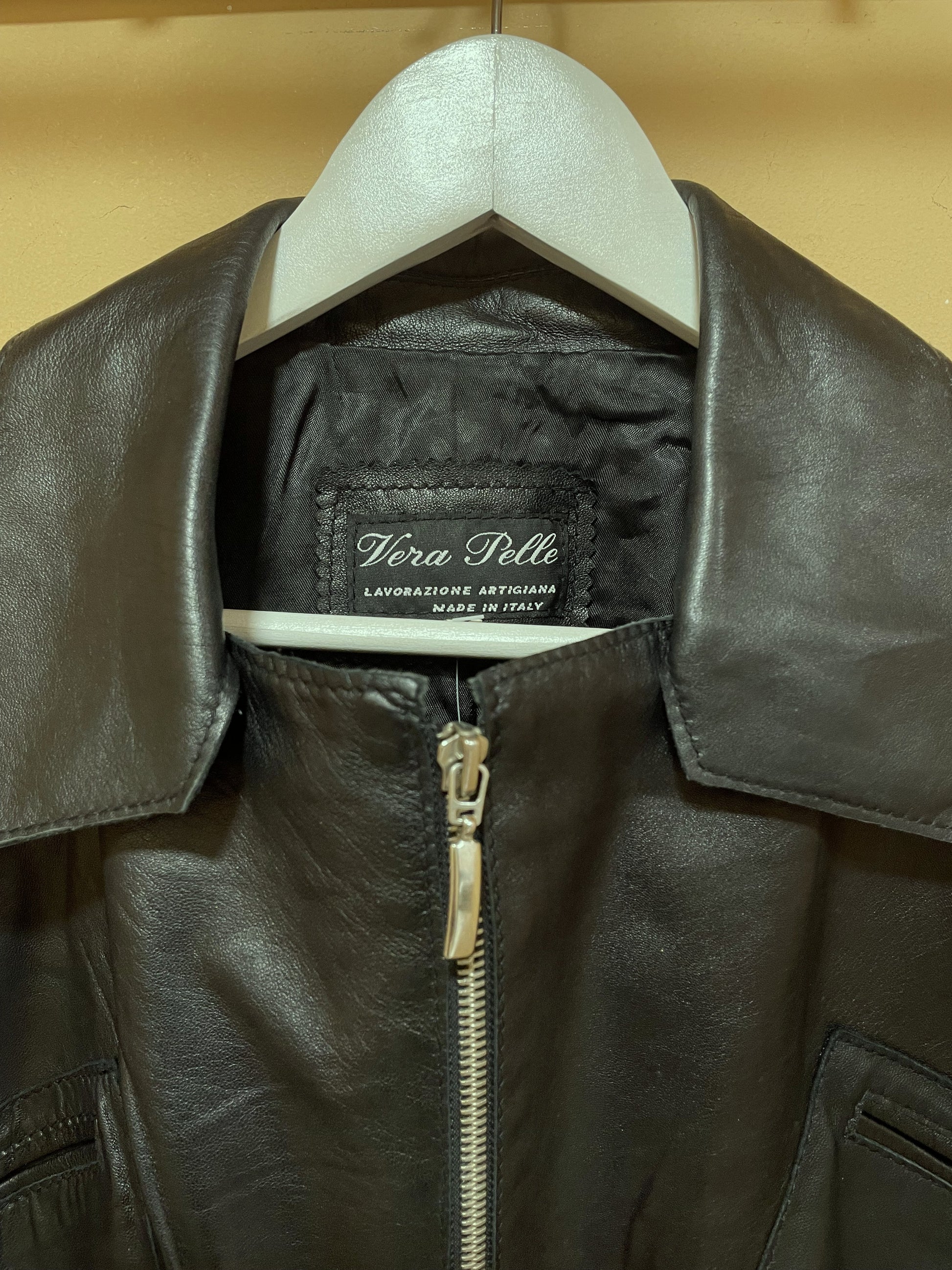 Ιταλικό, Δερμάτινο Γυναικείο Τζάκετ / Πανωφόρι σε Μαύρο χρώμα (Large)