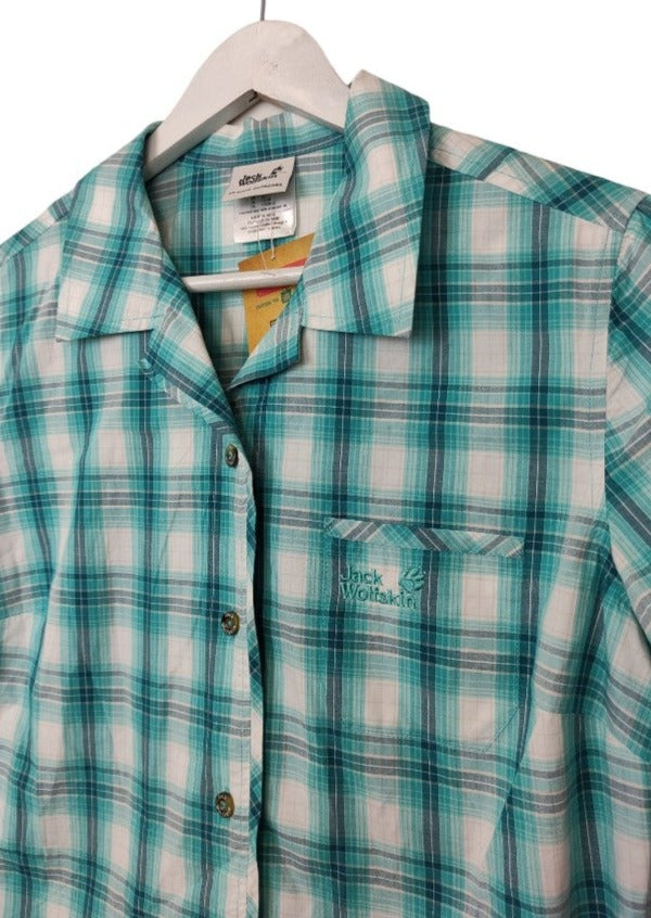 Κοντομάνικο, Καρό Γυναικείο Πουκάμισο JACK WOLFSKIN σε Βεραμάν χρώμα (Medium)