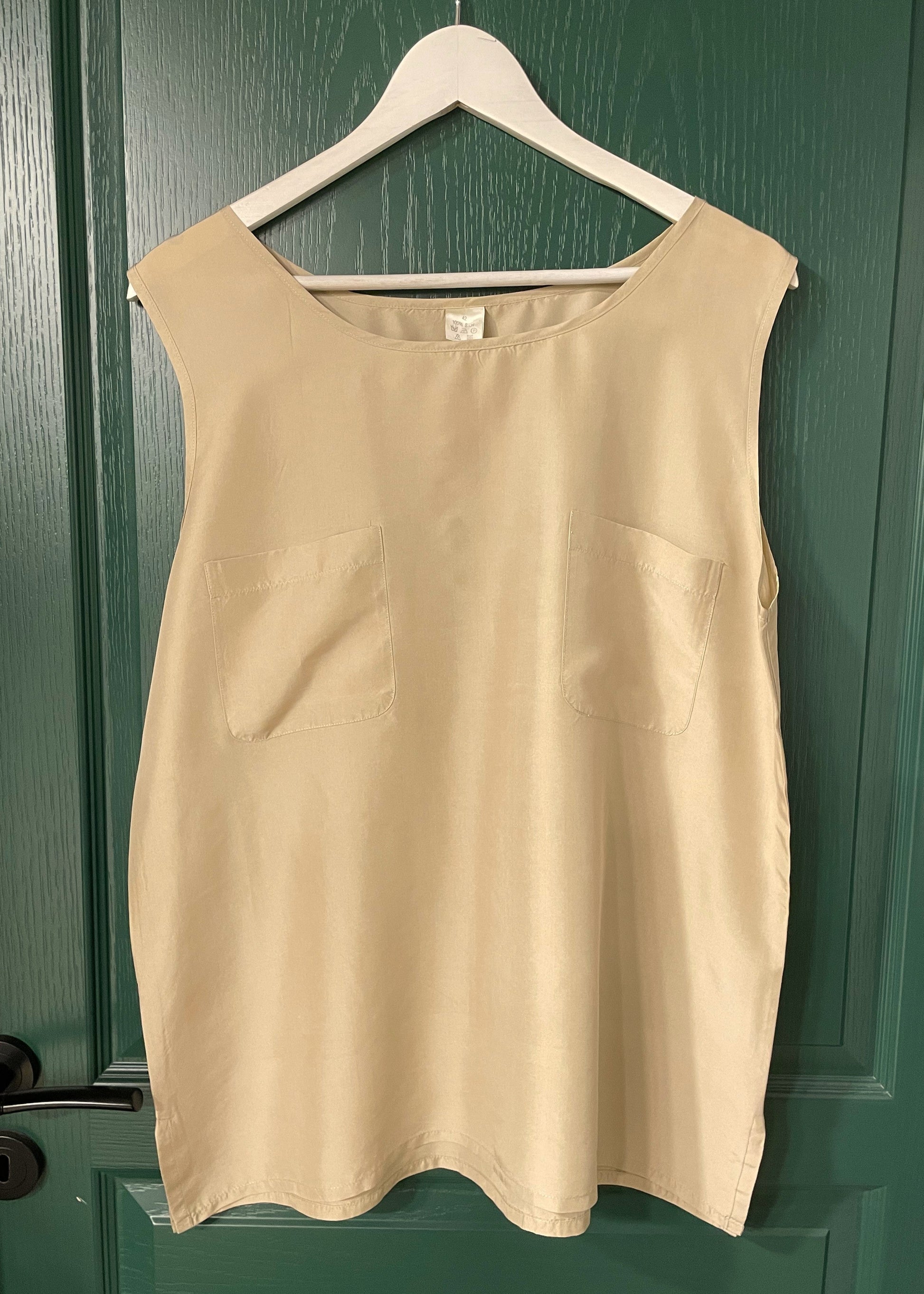 Μεταξωτή, Αμάνικη Γυναικεία Μπλούζα σε Μπεζ - Χρυσό (Large - 42)