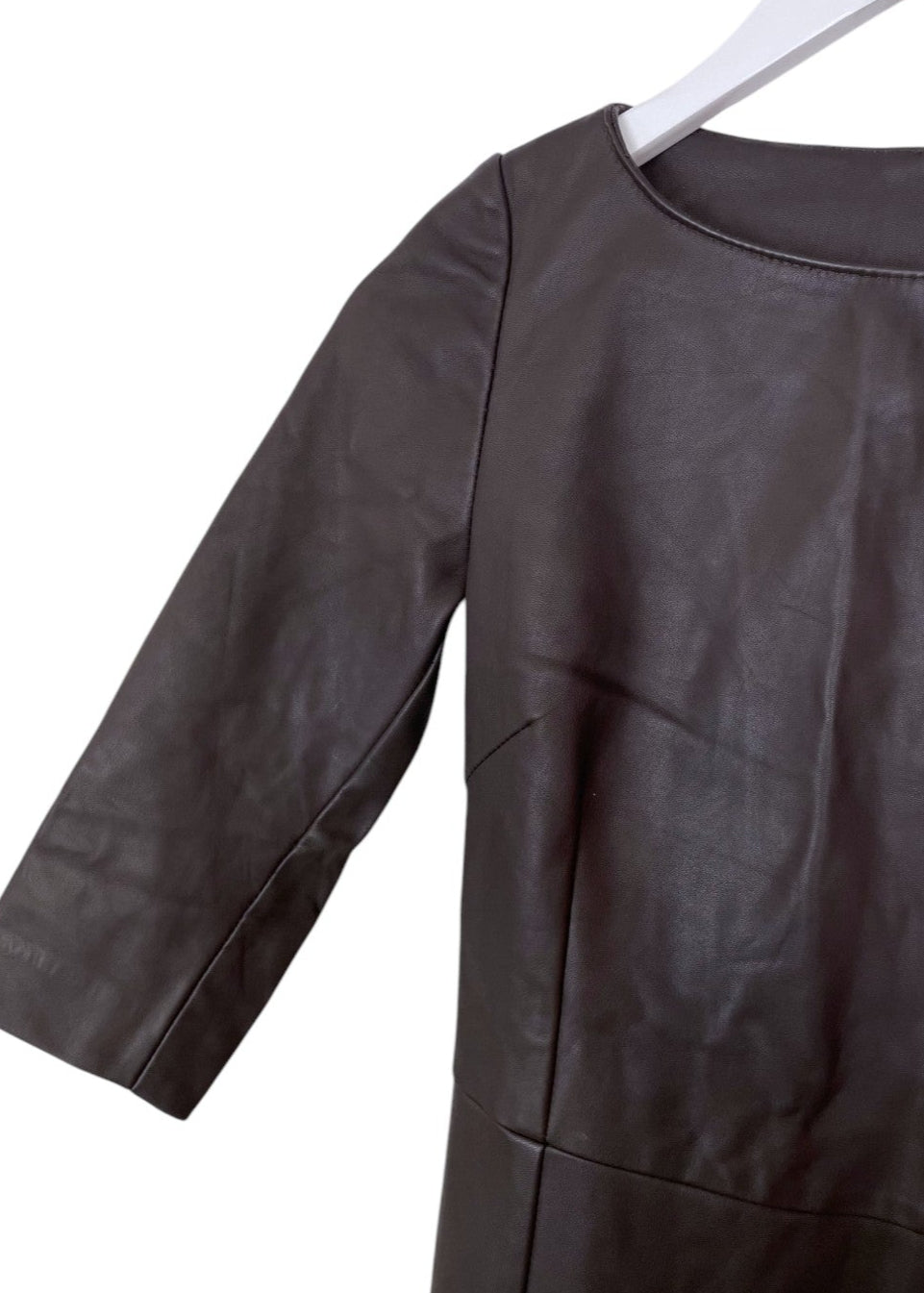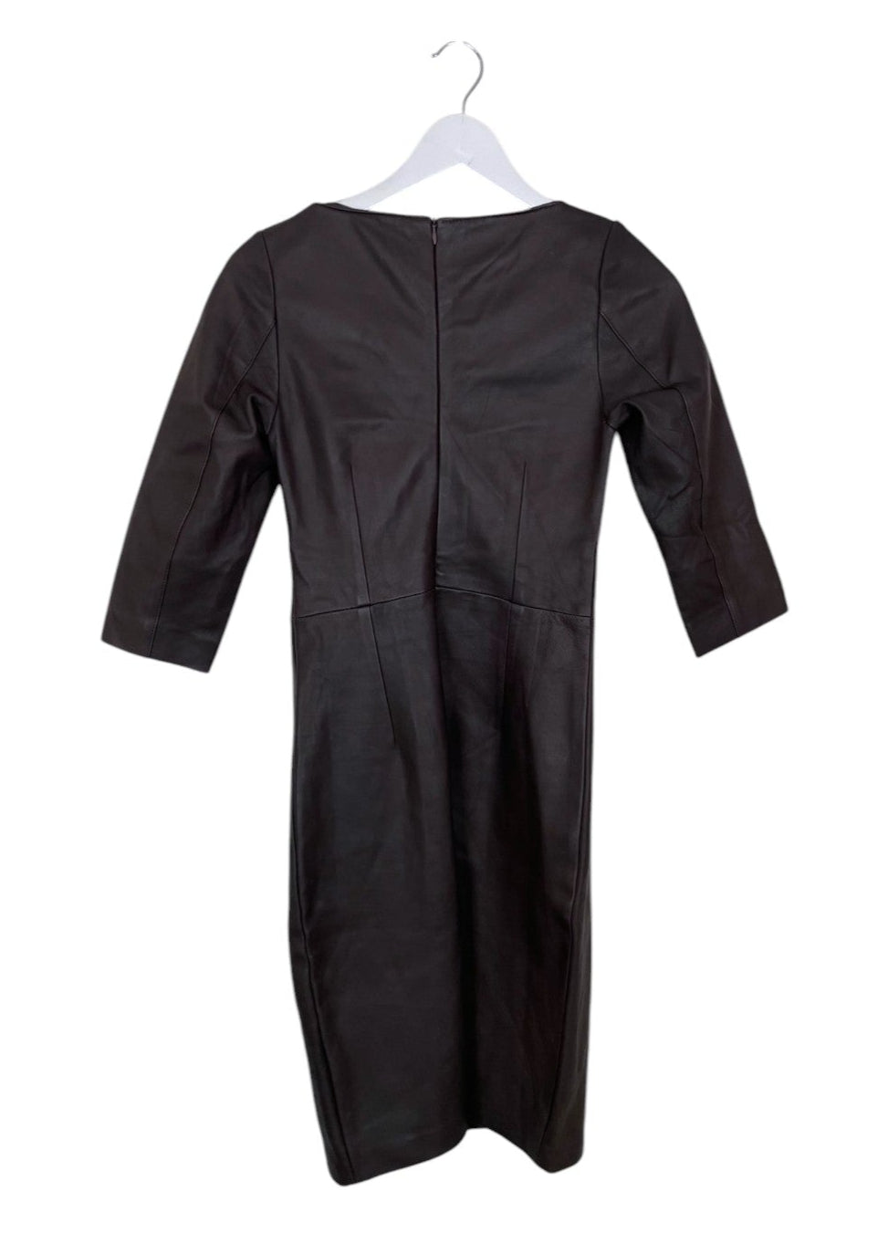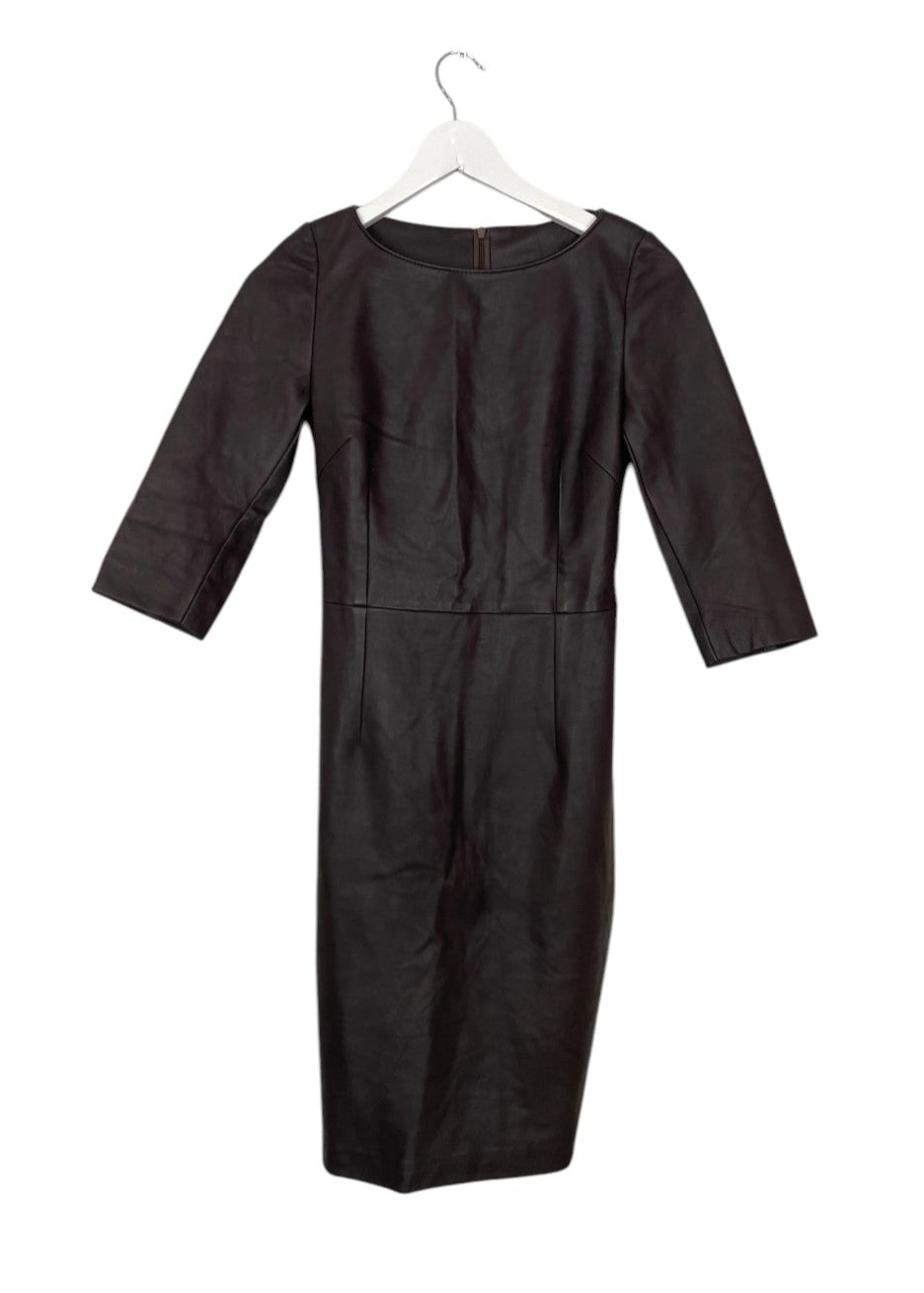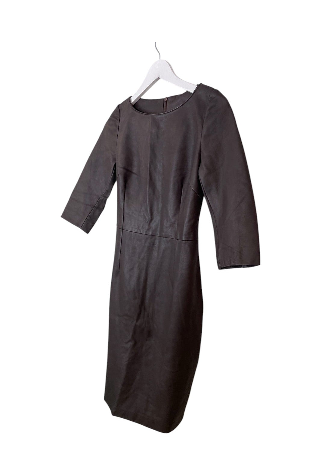 Δερμάτινο, Midi Φόρεμα σε Σκούρο Καφέ χρώμα (XS)