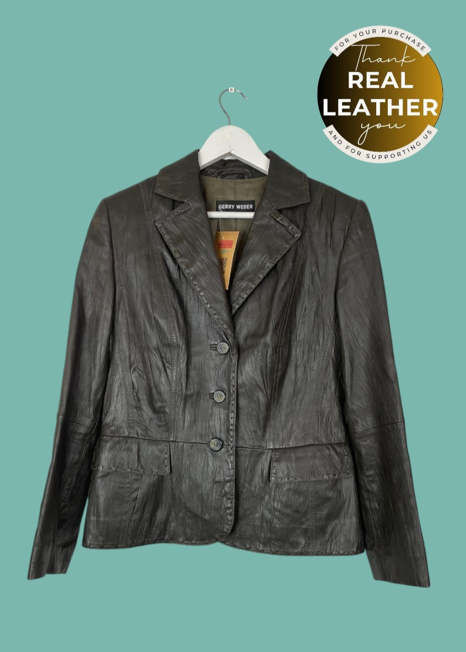 Γυναικείο Δερμάτινο Τζάκετ/Σακάκι GERRY WEBER σε Καφέ/Λαδί χρώμα.