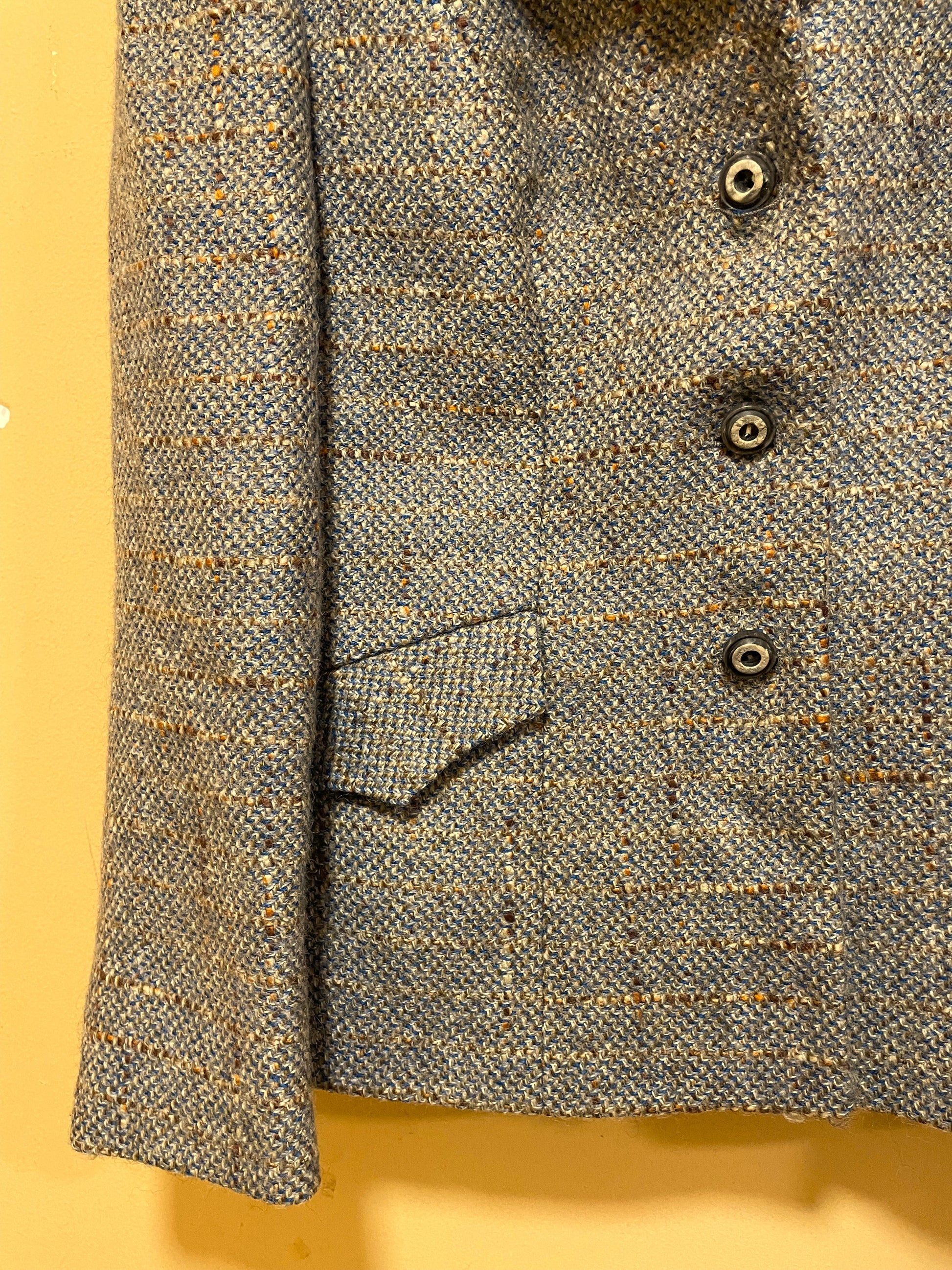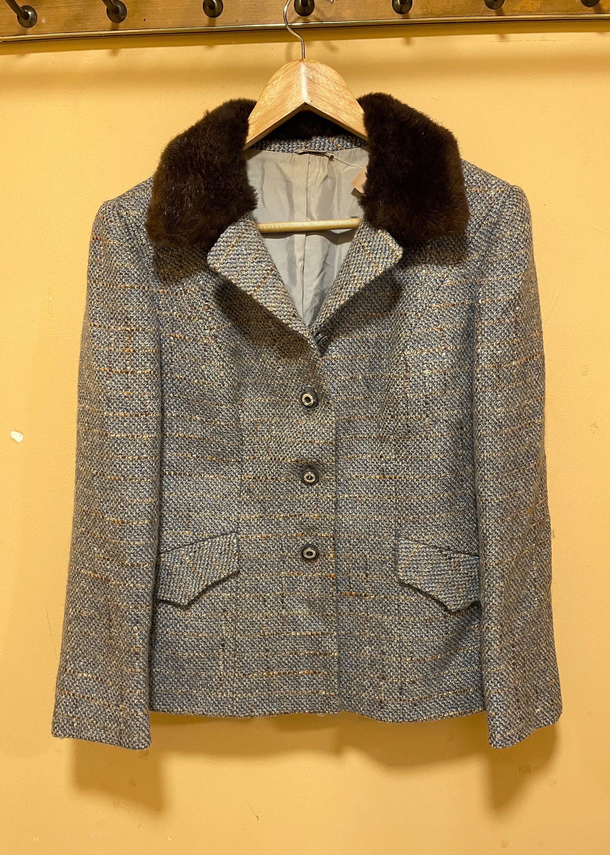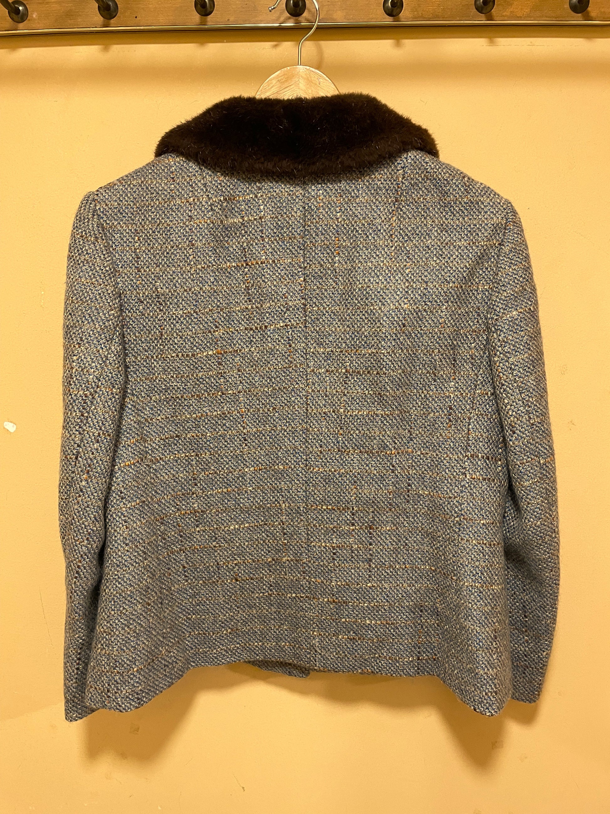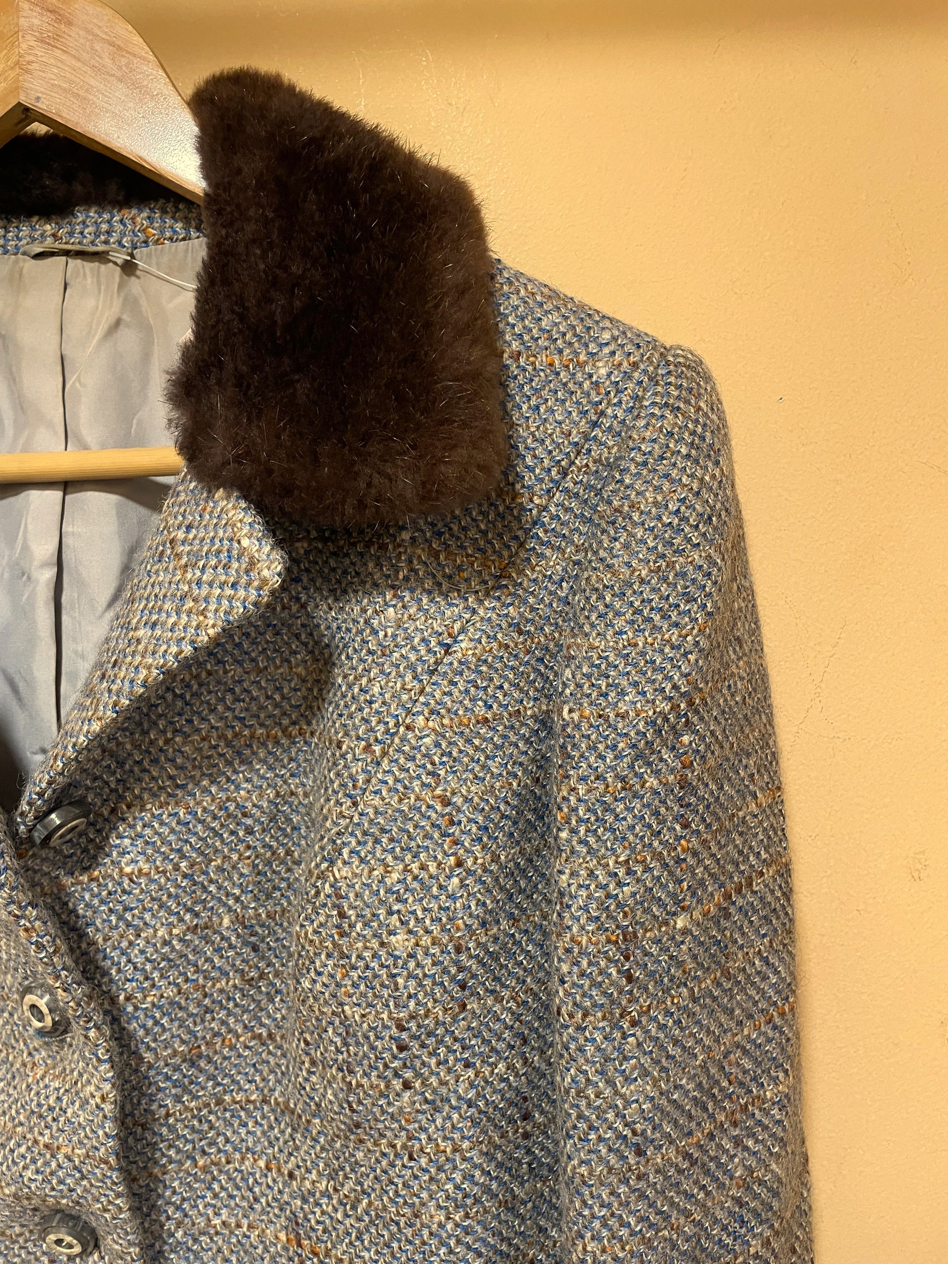Vintage, Μάλλινο Γυναικείο Σακάκι με Γούνα σε Σιέλ / Καφέ χρώμα.