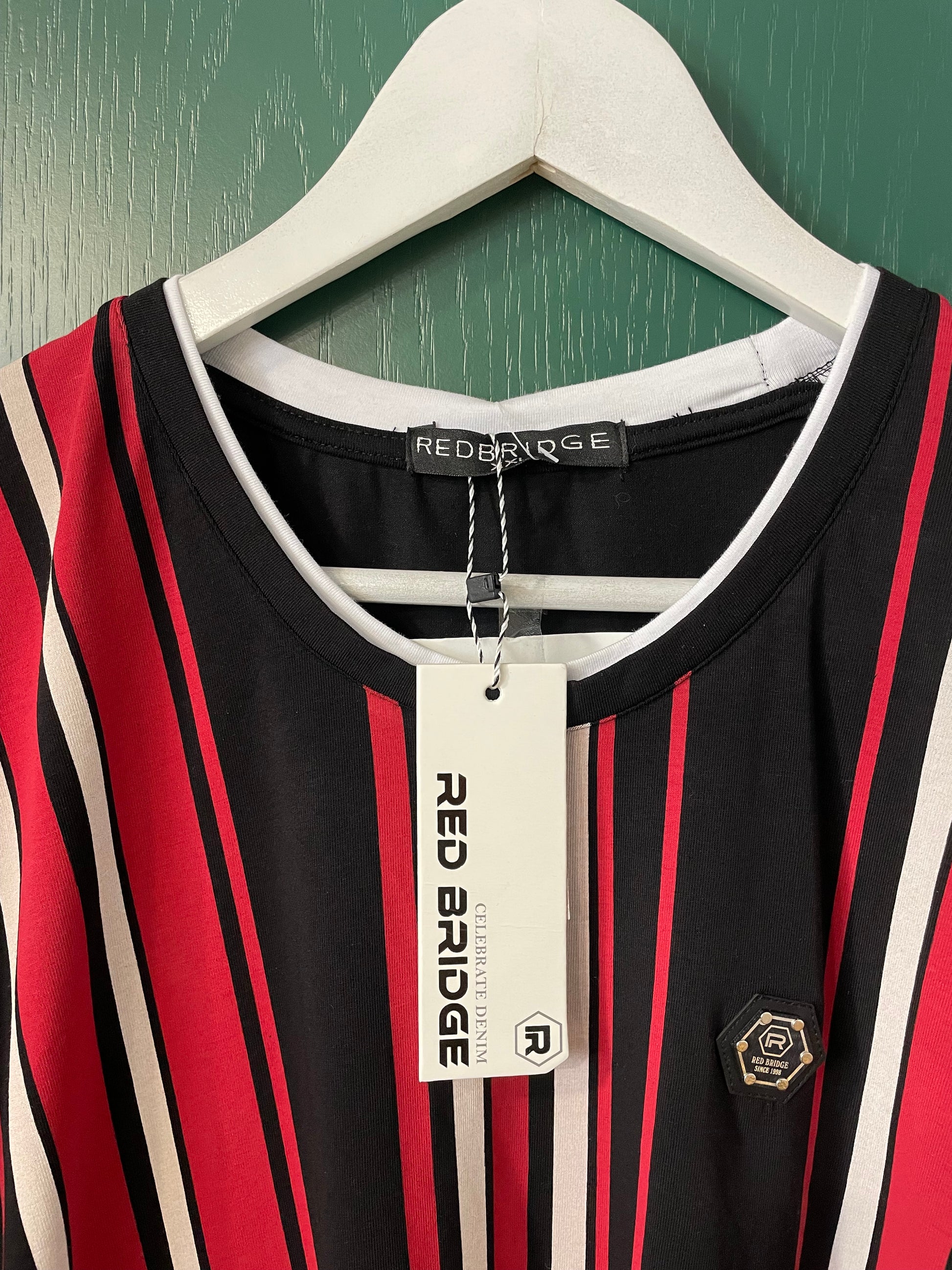 Stock, Κοντομάνικη Ανδρική Μπλούζα - T-Shirt REDBRIDGE σε Μαύρο - Κόκκινο χρώμα (L/XL- Εφαρμοστό)