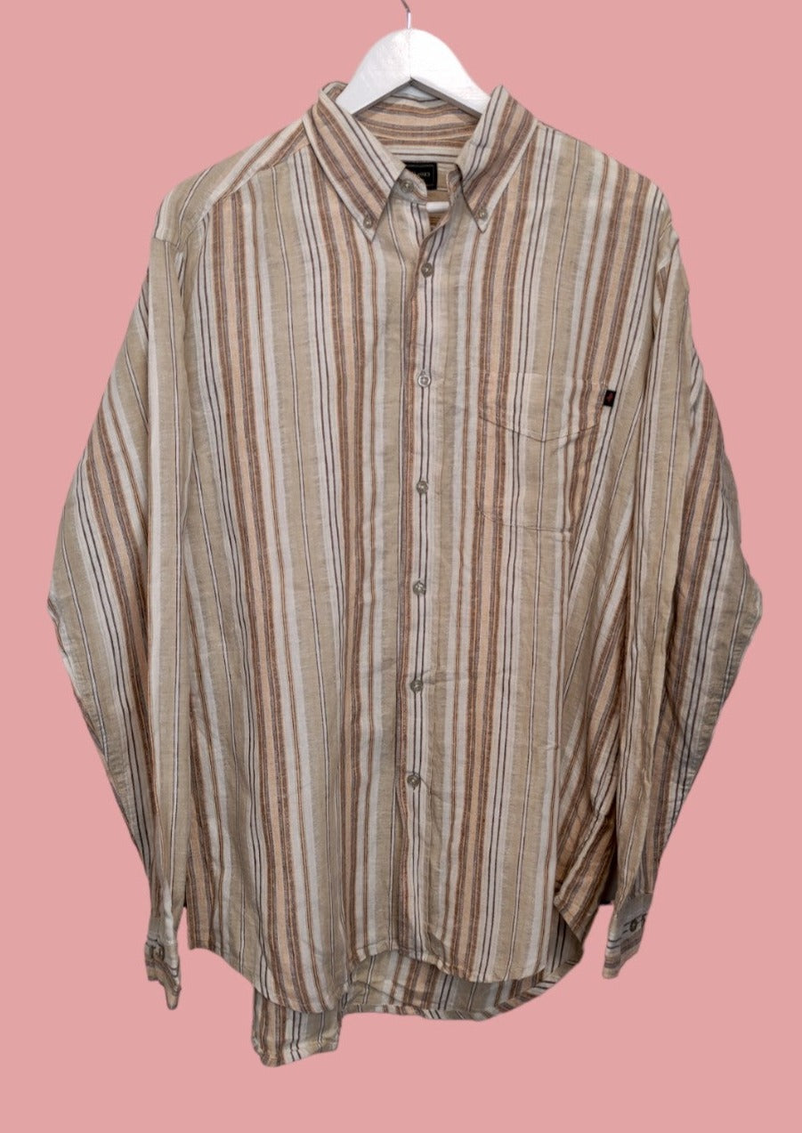 Λινό/Βαμβακερό Ανδρικό Πουκάμισο MARLBORO CLASSICS σε Μπεζ-Καφέ χρώμα (Large)