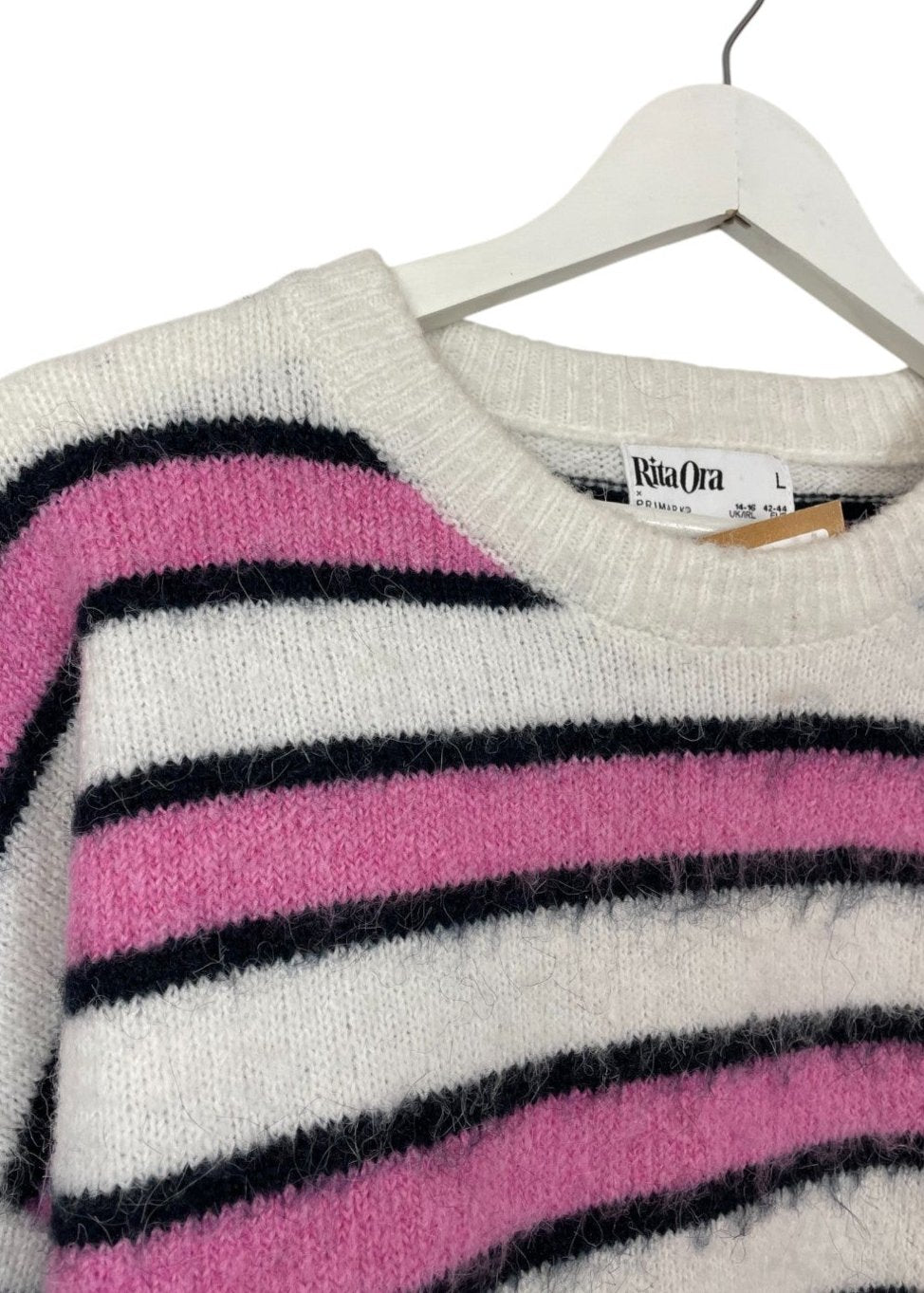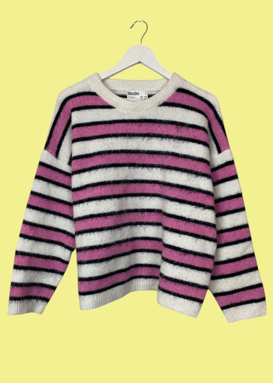 Γυναικεία Πλεκτή Μπλούζα/Πουλόβερ RITA ORA σε Λευκό/Ροζ Χρώμα (Large)