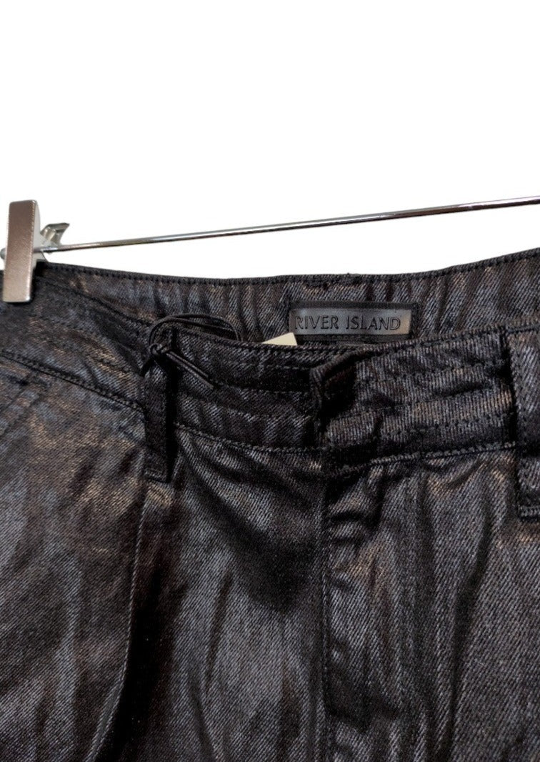 Stock, Γυναικείο Τζιν Σορτς RIVER ISLAND σε Γυαλιστερό Μαύρο (No 10-Medium)