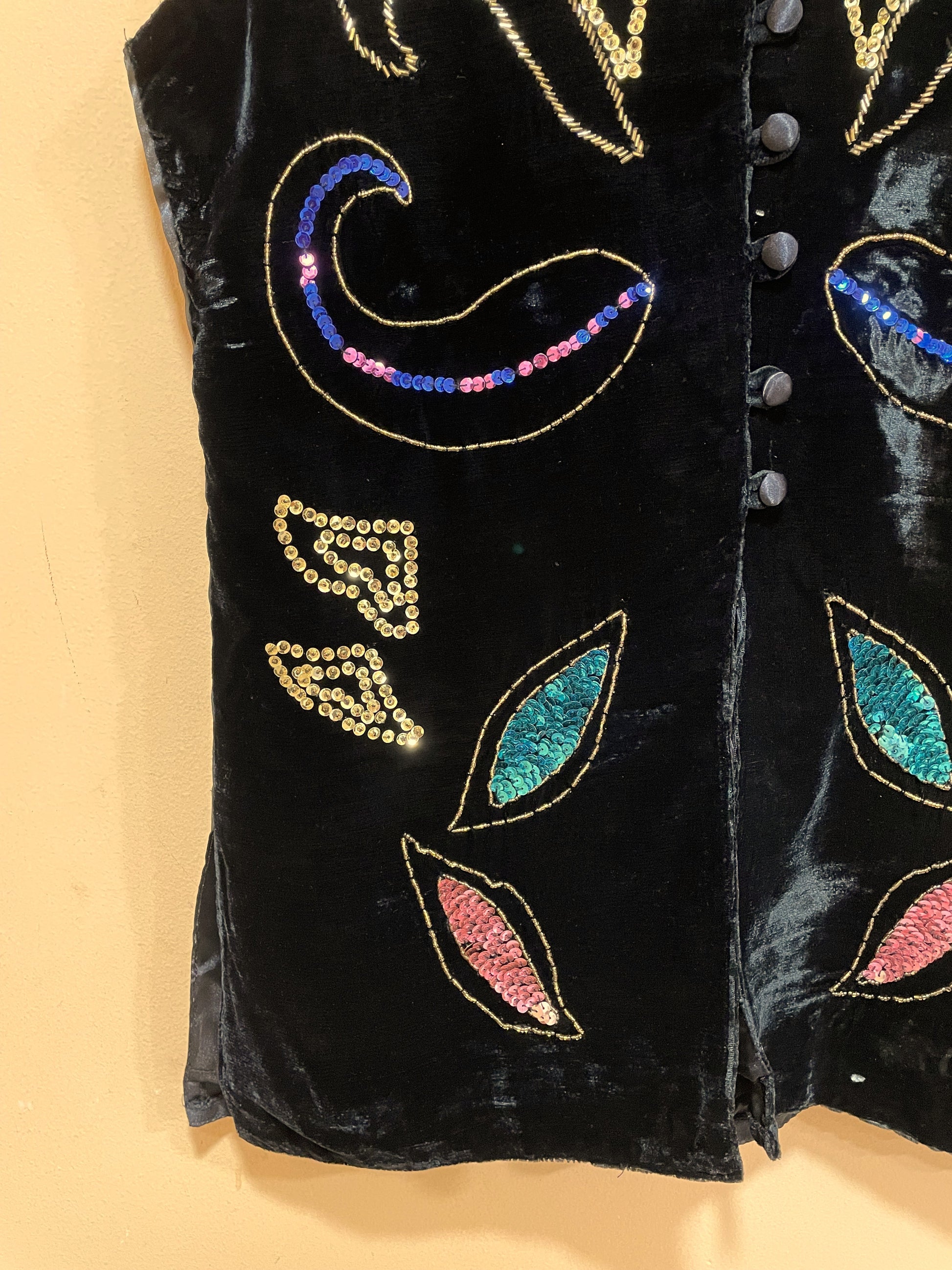 Vintage, Βελούδινο Γυναικείο Γιλέκο MISS JOY σε Μαύρο χρώμα.