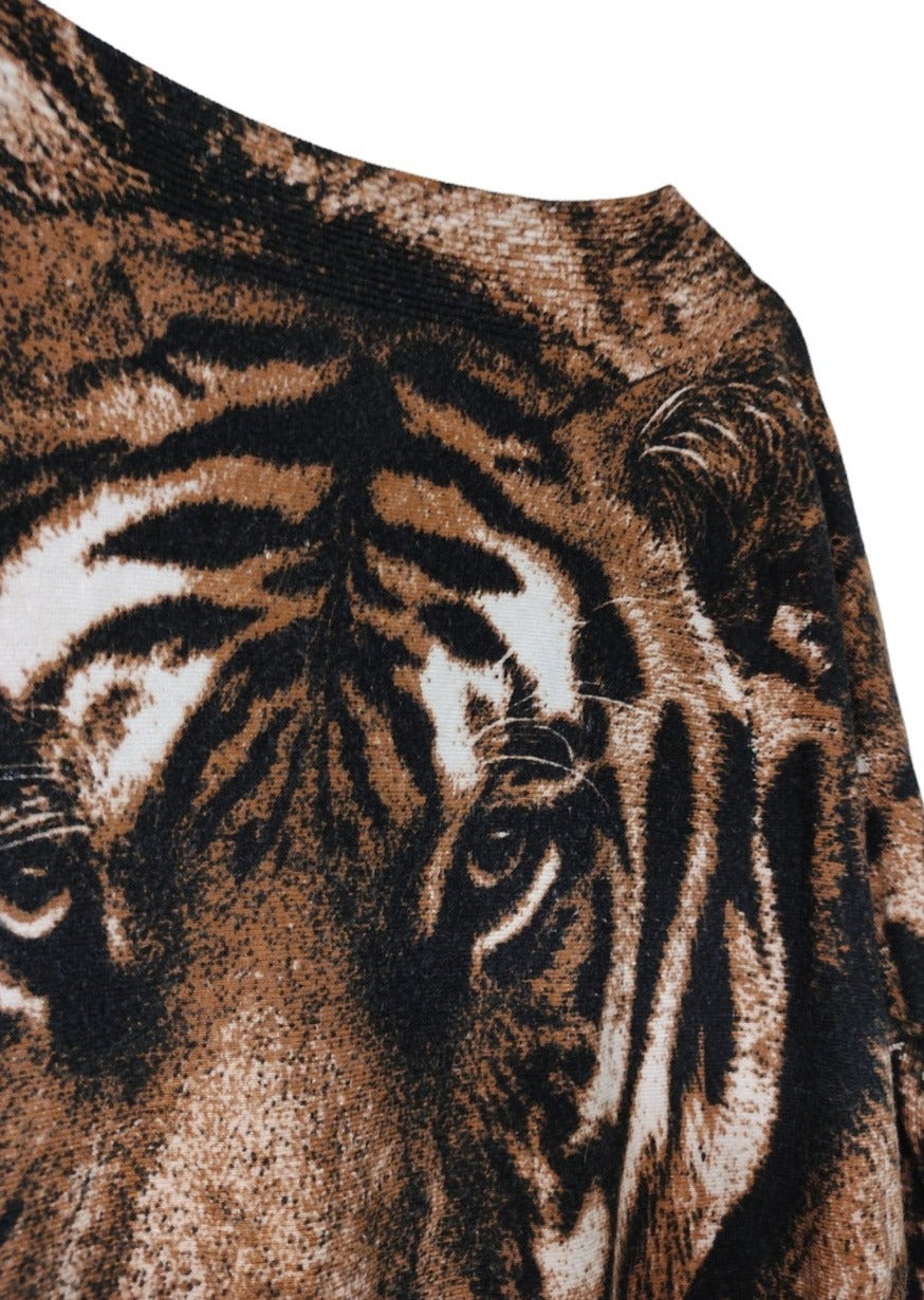 Vintage, Γυναικεία, Animal Print, Πλεκτή Μπλούζα σε Καφέ χρώμα.