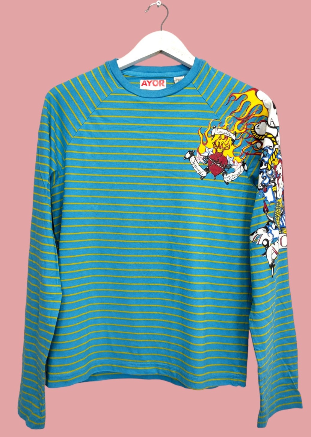 Vintage Ανδρική Casual Μπλούζα AYOR σε Γαλάζιο - Κίτρινο χρώμα.