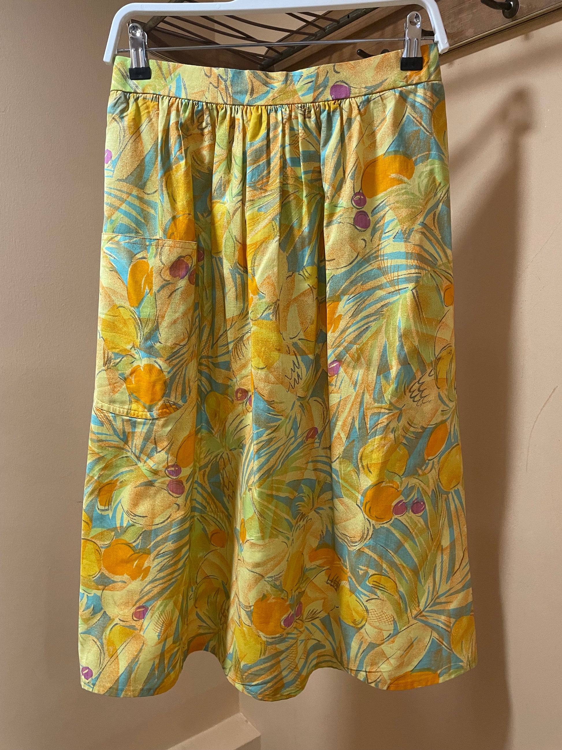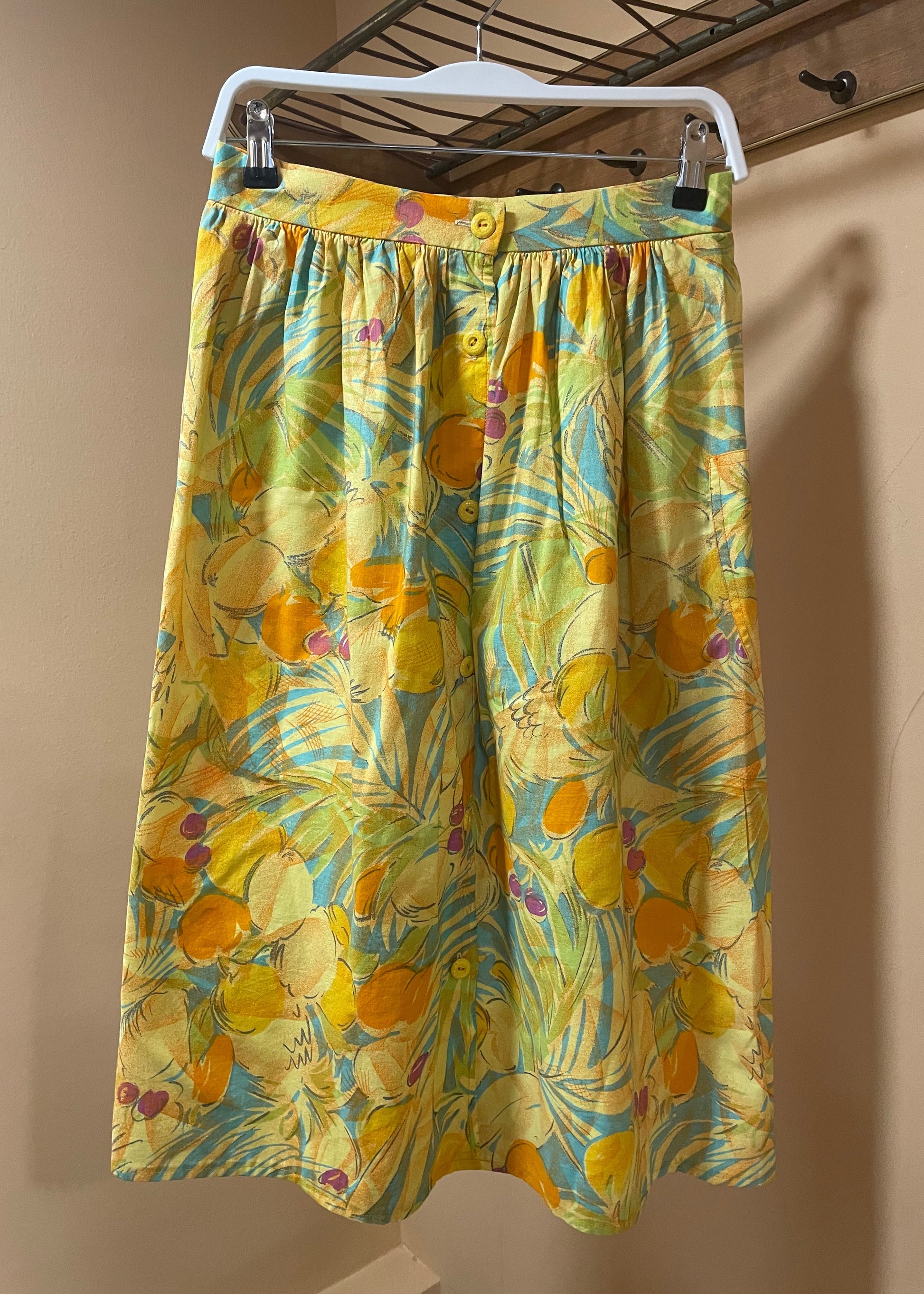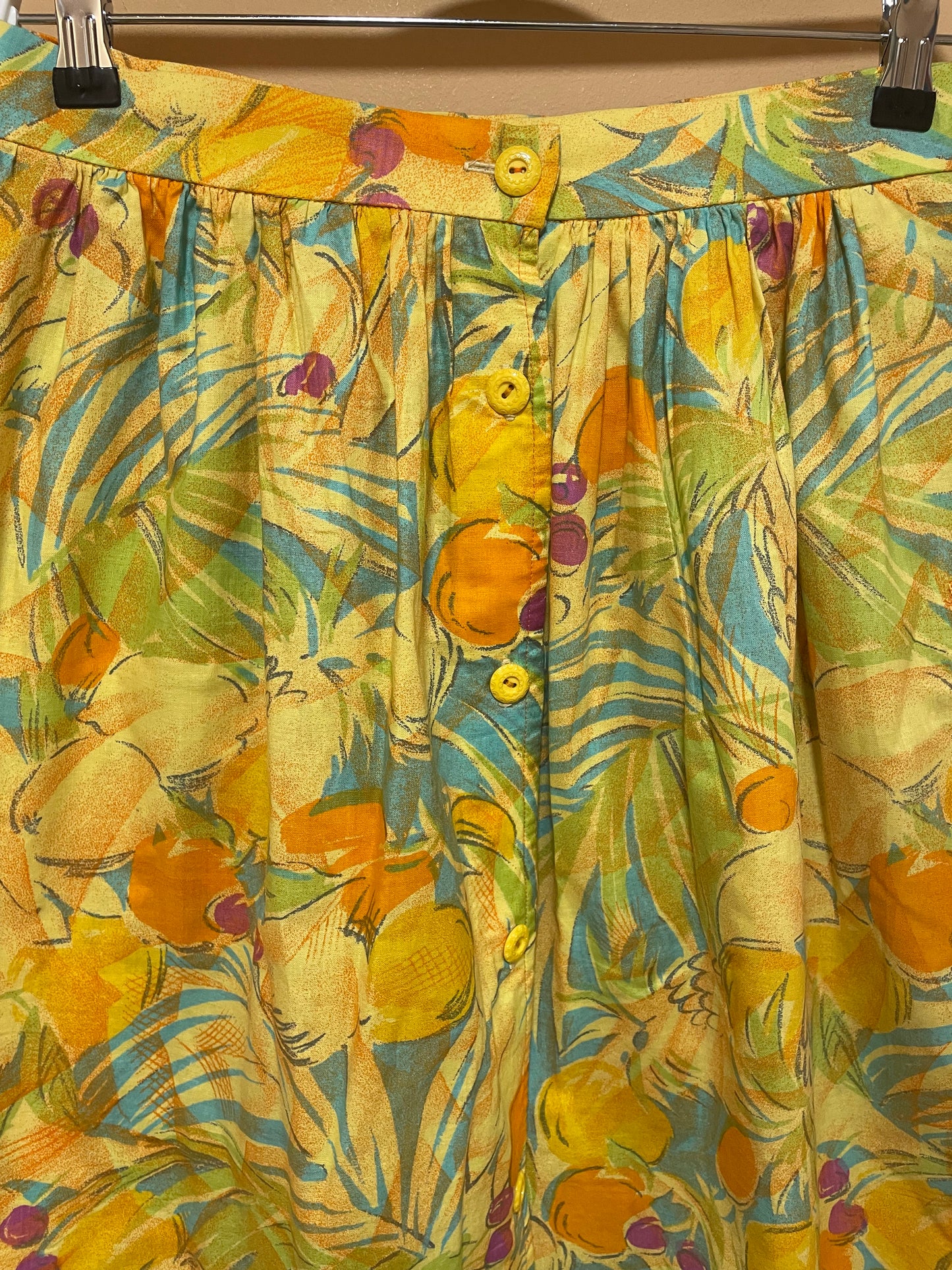 Vintage, Ιταλική, Εμπριμέ Φούστα σε Κίτρινο - Πορτοκαλί χρώμα (Small)