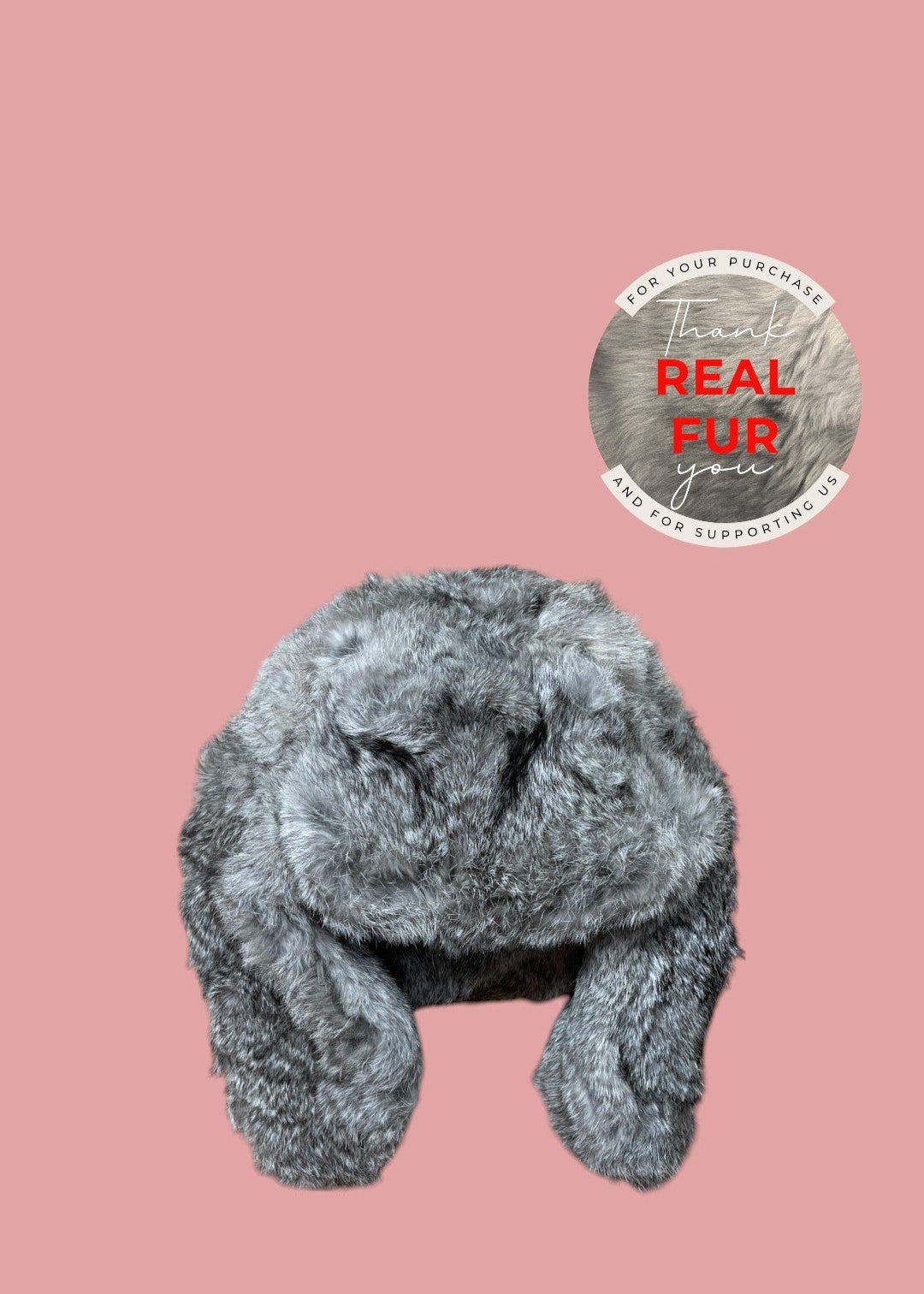 Vintage Γούνινο Καπέλο από Φυσική Γούνα σε Γκρι Χρώμα.