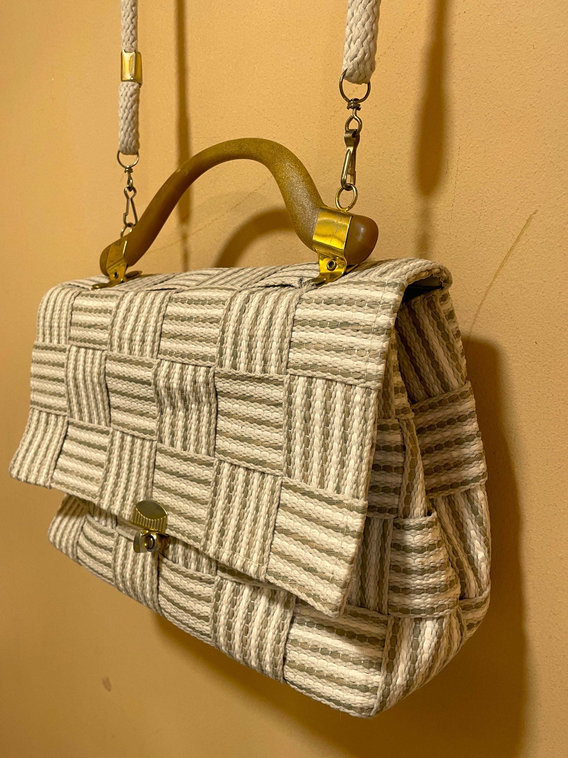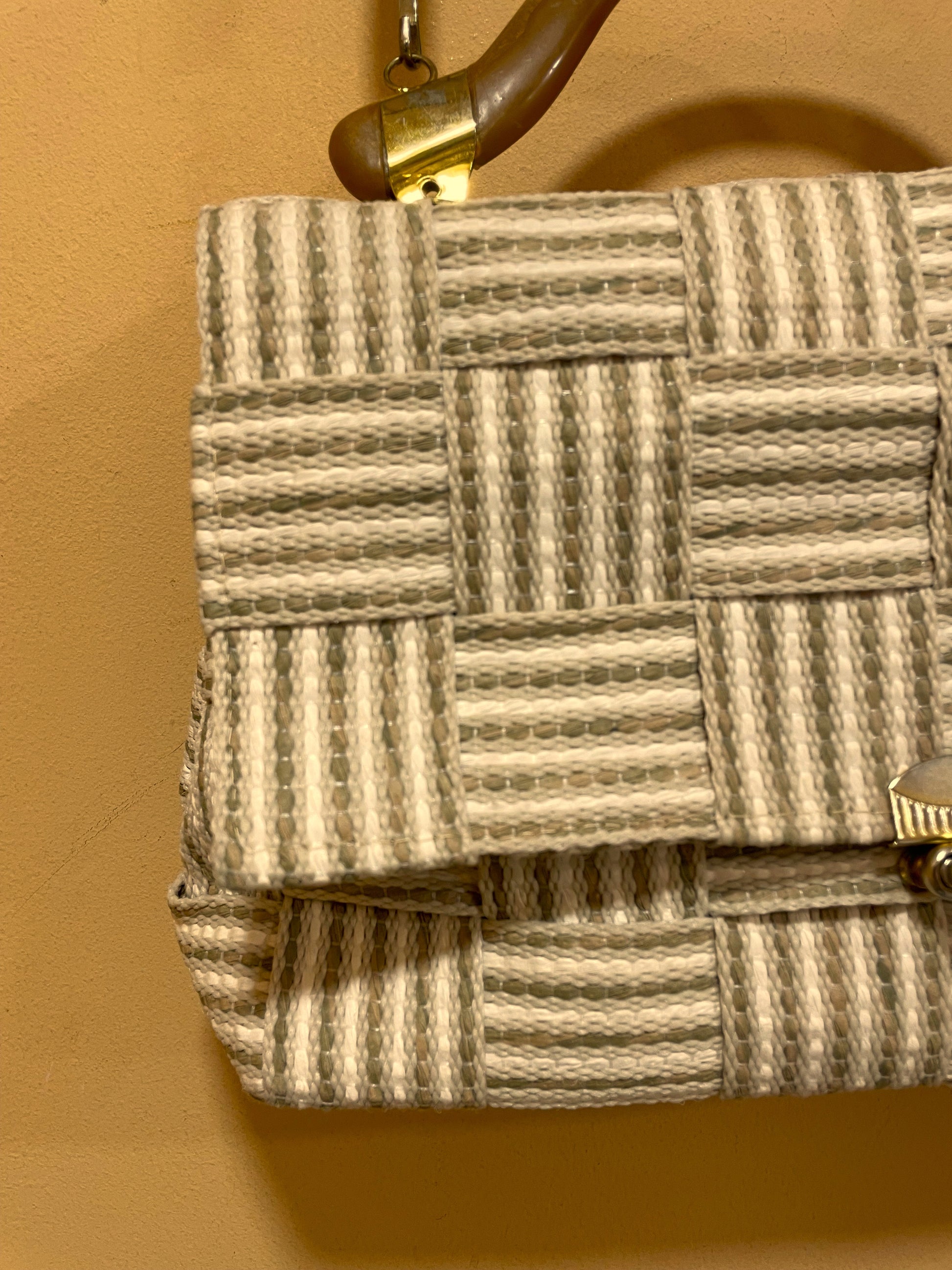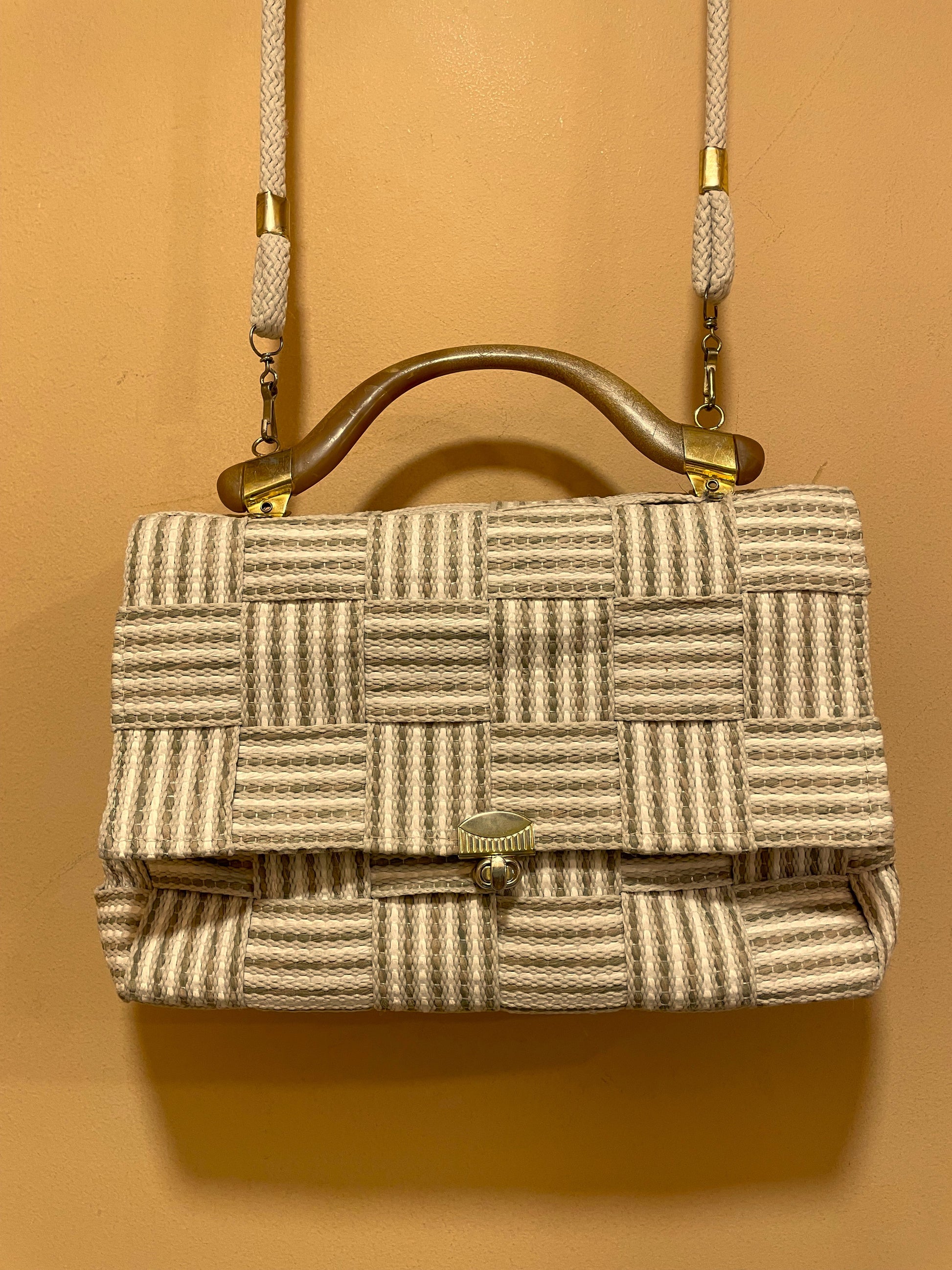 Vintage, Ψάθινη Τσάντα σε Μπεζ - Λαδί χρώμα.