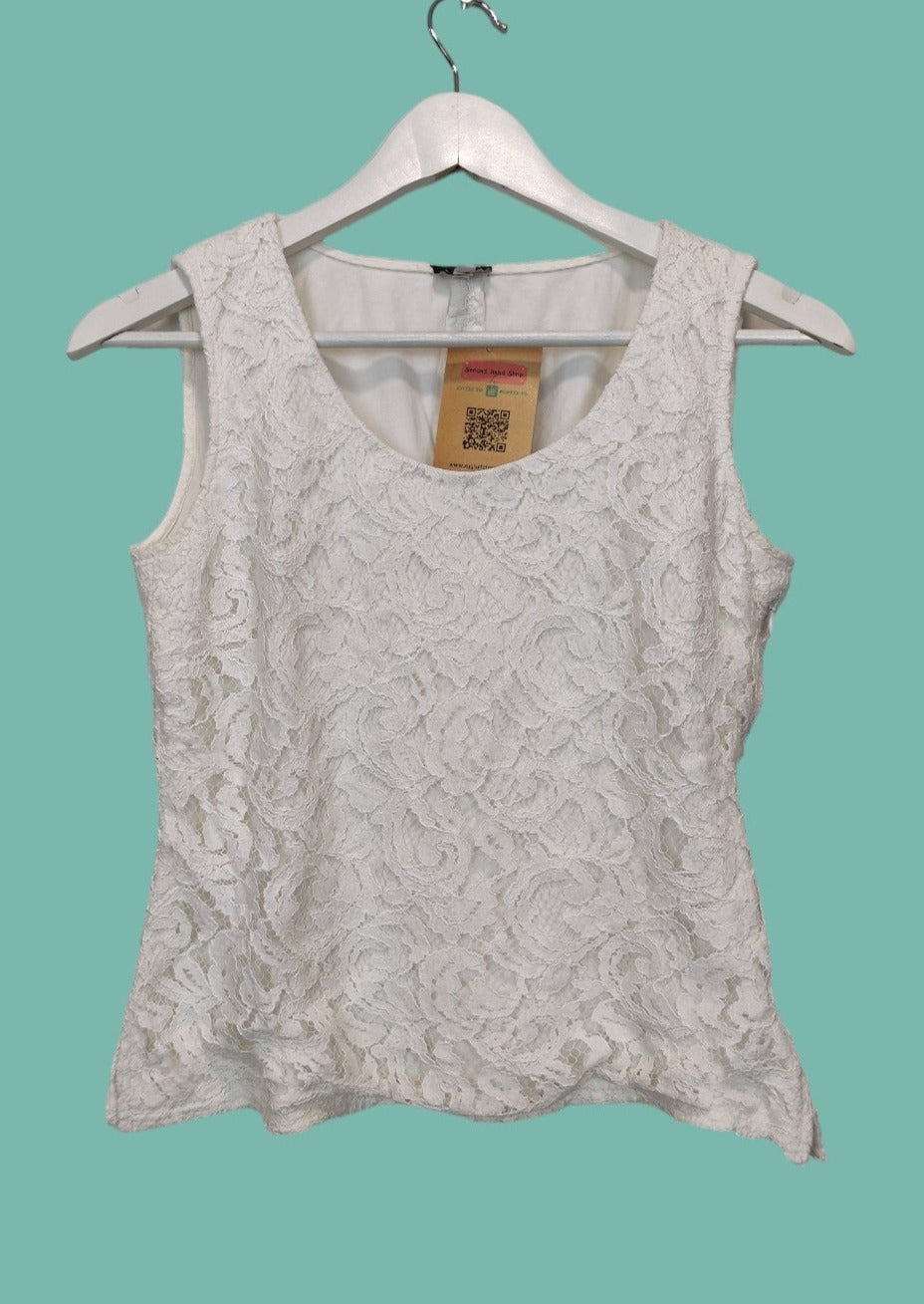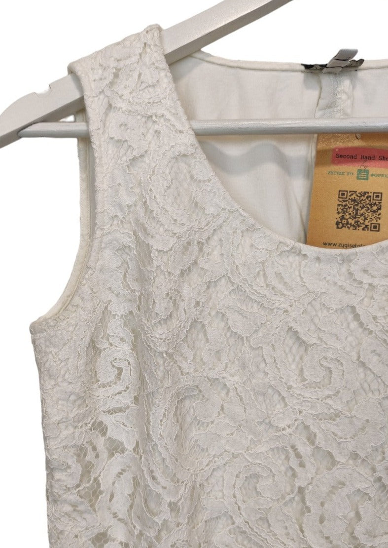 Αμάνικη, Γυναικεία Μπλούζα ARMANI με Δαντέλα σε Λευκό Χρώμα (Medium)
